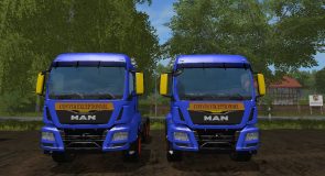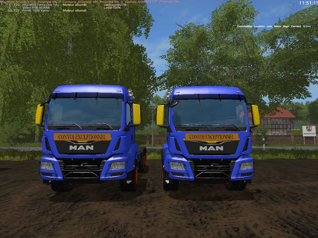 VOICI 2 trucks Aguas Tenias MAN TGS, auquel j’ai changer la couleur en blue et ajouter des plaqus de convoi exeptionnel.