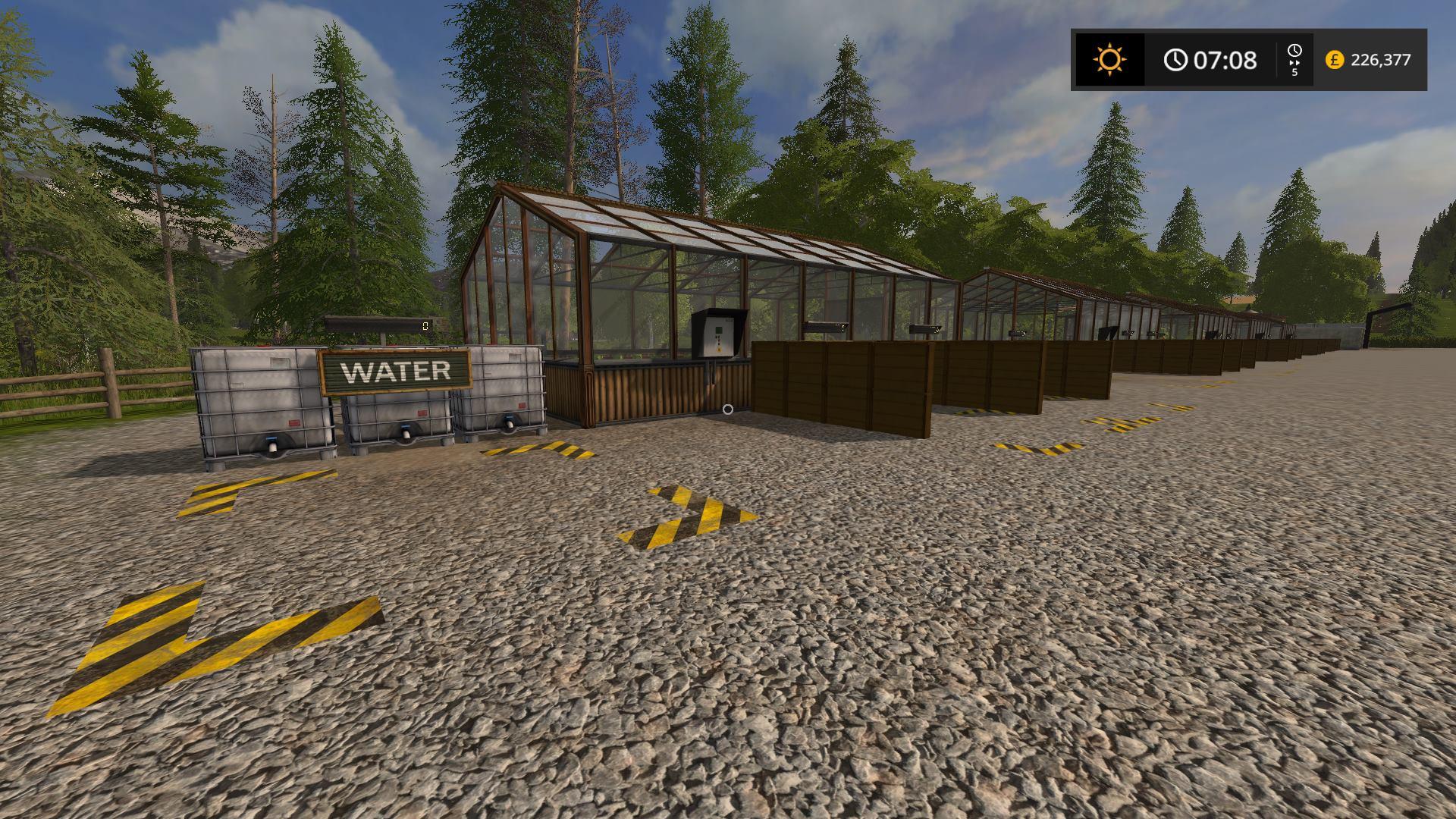 Particles and sound added to the green houses.