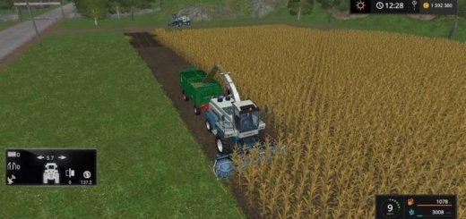 The sound of pouring grain from the tank