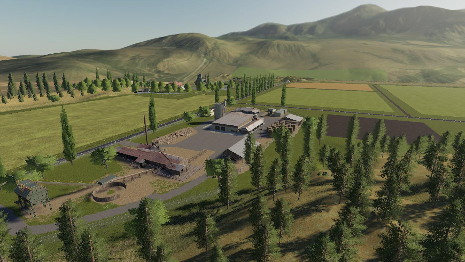 The focus of the map is forestry, but there are enough decent size fields that a player can easily make a living just with farming. There are no animal zones so they will have to be placeables. There is ample open flat ground for the player to use for placeables. You may have to cut down a few trees and grind the stumps off first though.