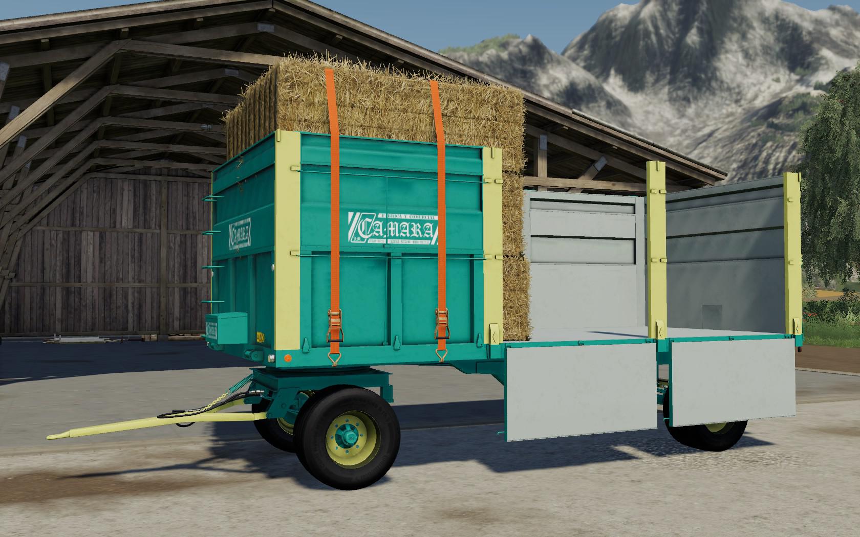 Trailer of folding sides of the spanish brand Camara. Two axles chassis. Dimensions 6000mm in length, 2550mm in width and 1550mm in height.