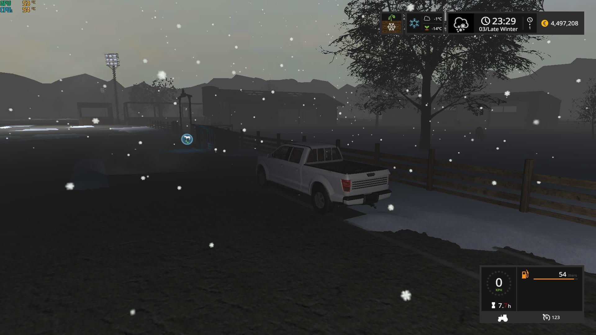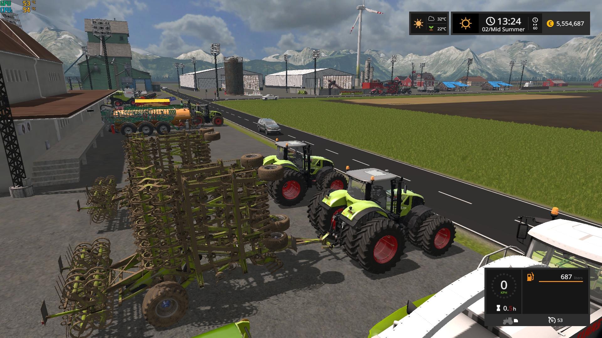 All doors are opened on foot, all large white storage buiding have 2 vehicule repair shop bays, so you dont have to go far for maintenance anymore. Many lamps were added to improve night vision in work areas, dairy capacity is 200k now, this will not affect your game save. many trigger were adjusted and cow mixing unit heaps corrected.