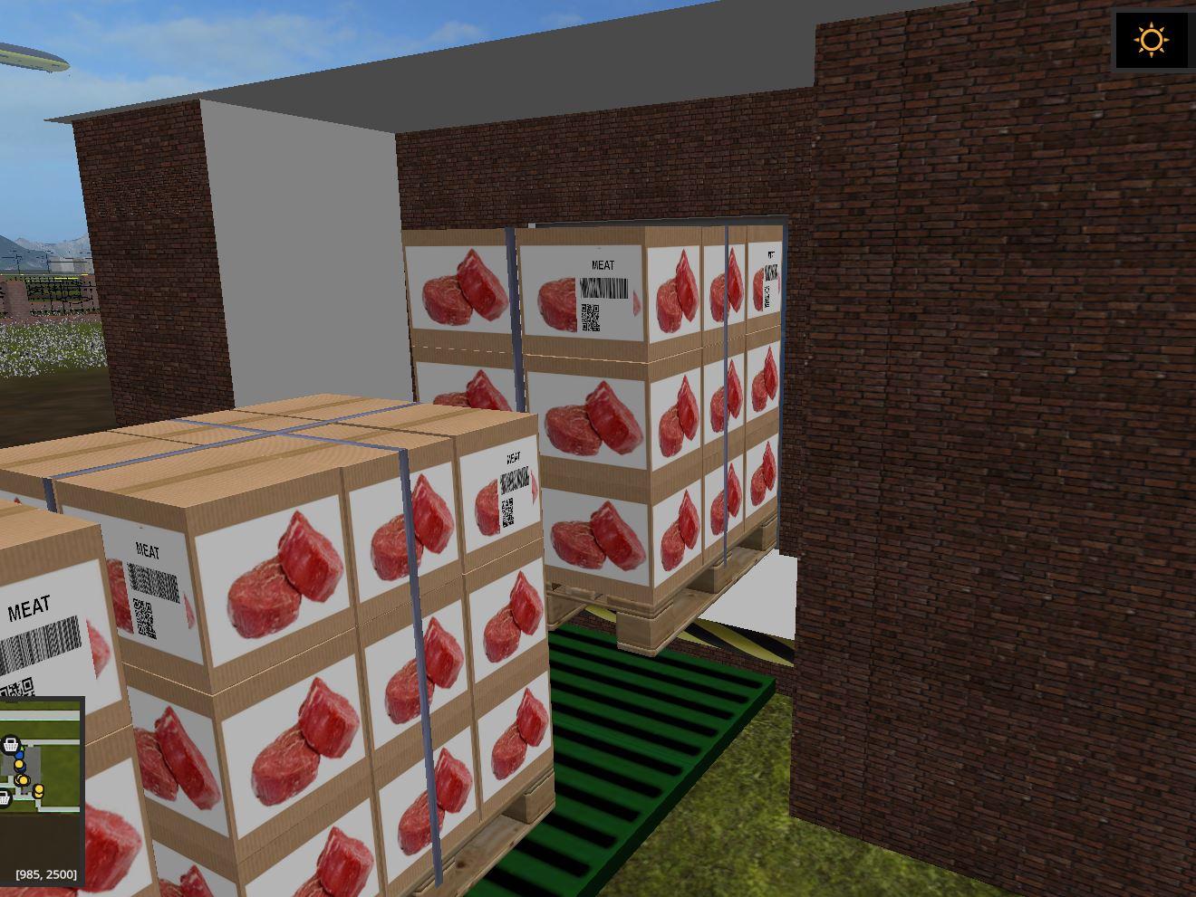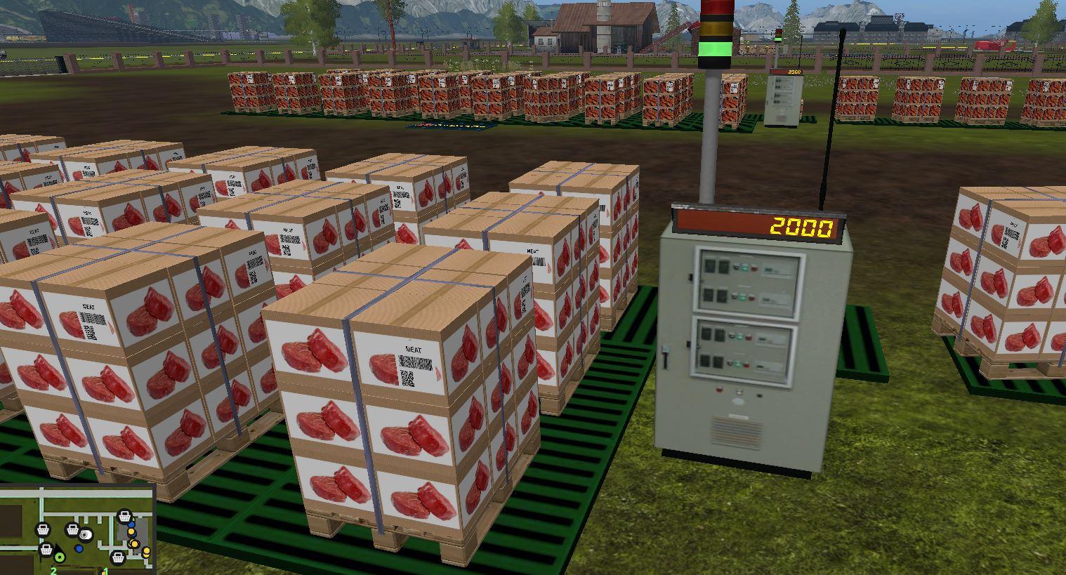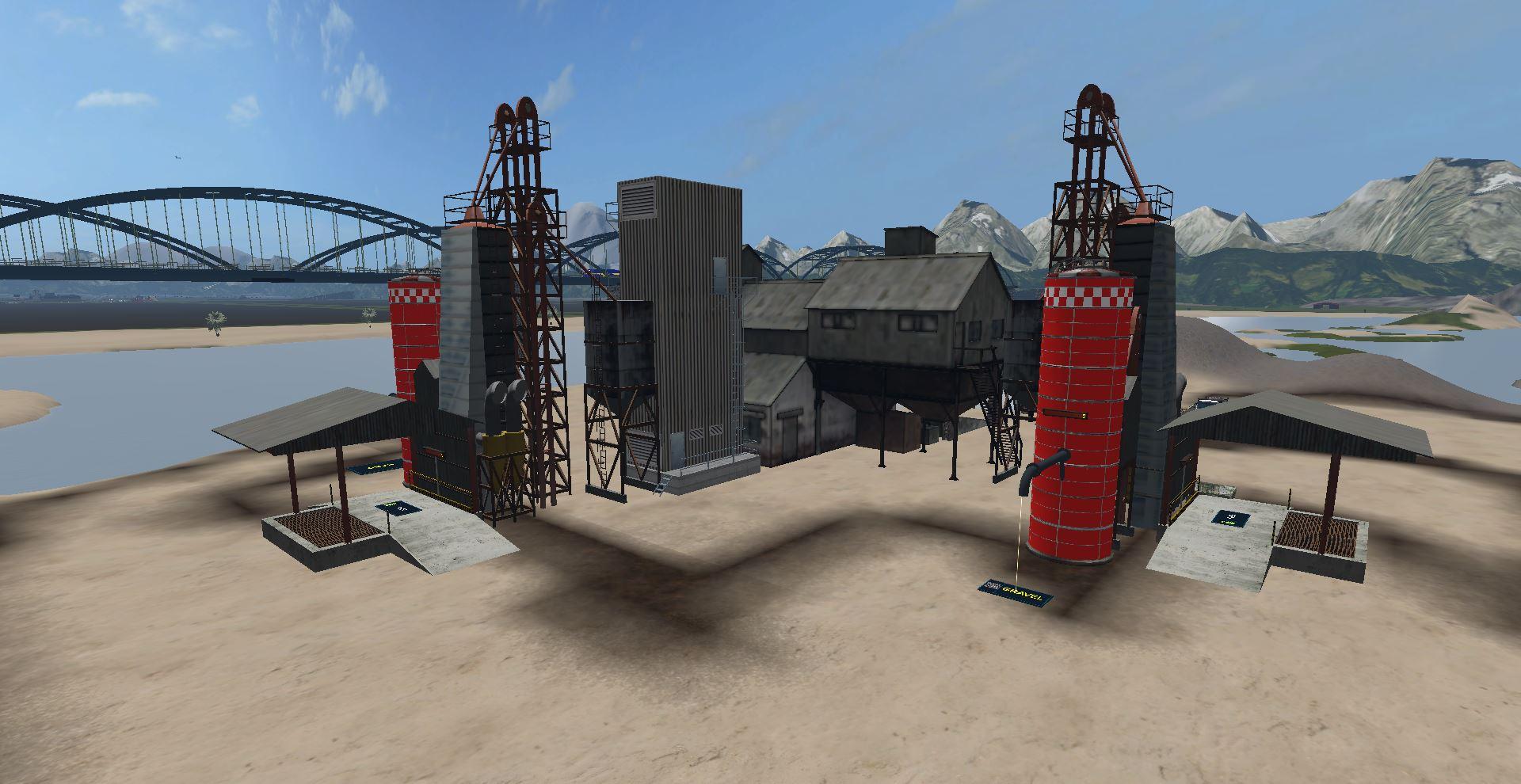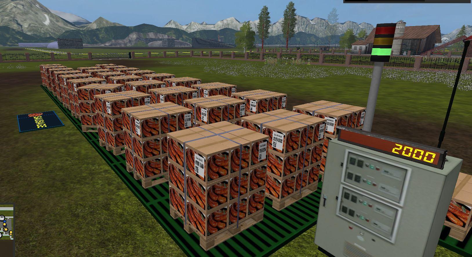 (sand, gravel), Concrete (concrete), Cement (cement), Rabbits (rabbitmeat), Slaughterhouse (Cattle), CoffeeRaw, CoffeeRoaster, Biofood (fatteningfood, goosefood, rabbitfood) Sausage, Sawmill, Sand, Sugar Factory, Compost Master, Mill, Sawmill, Sandwich, Sugar Factory, Sawmill, Sandwich, Sausage, Sausage, OilMills, Potato Center (washed potatoes, steamed potatoes), Reibekuchen, Soya, Weberei, Pallet, Eggfarm, Greenhouses (strawberry, raspberry, redcurrants), Greenhouses1 (tomato, cauliflower, lettuce, pumpkin, melon) Condensed Milk, Kefir, Butter), Fish (Kaviar, Live and Frozen Trout, Fish Meal), Noodles, Juice, Backwaren, Whiskey, Fermenting Silo, Dryer, Forage Factory, PigFood factory