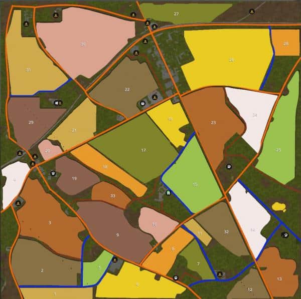 – 33 buyable crop fields, with sizes ranging from 13-200 acres