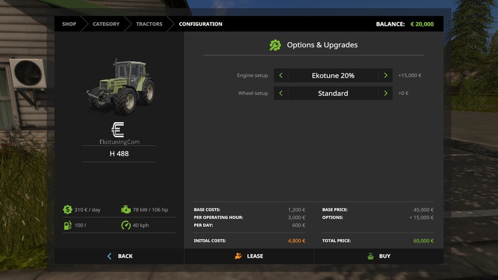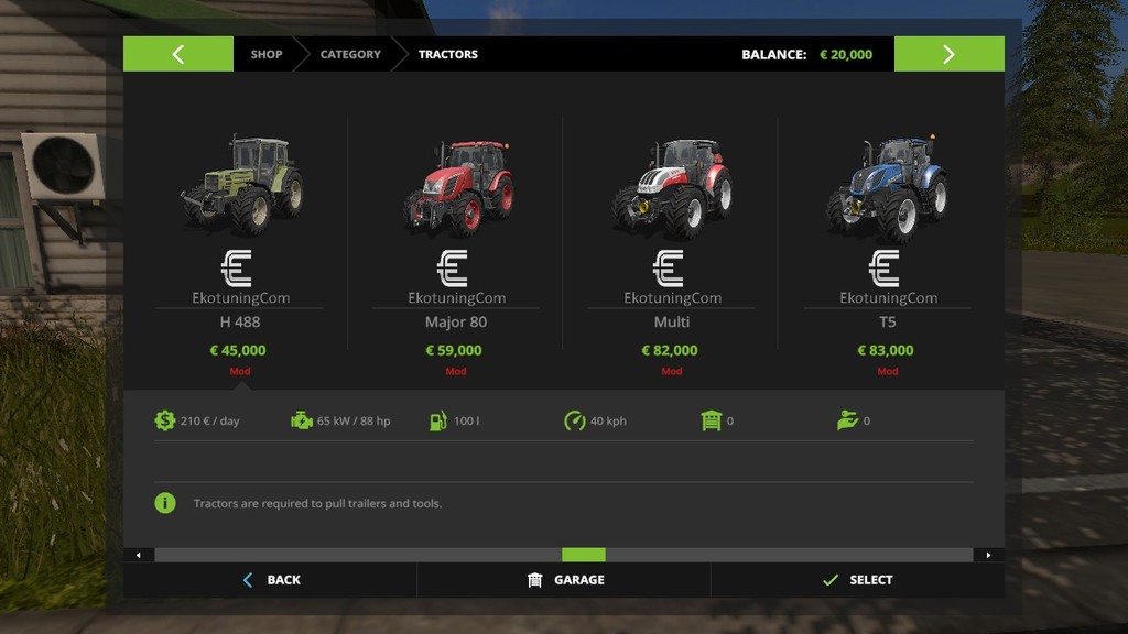 Most farmers will know what Ekotune is, but for those who don’t know, Ekotuning allows for a piece of equipment to have its power increased. WARNING: this mod adds an entire new set of tractors not modify the originals that allow for the Ekotune option, you can find them in the “tractors” category, or under the brand “Ekotune”