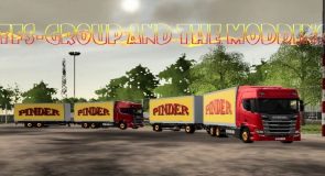 A new set of vehicles, trucks and trailers flocked with the CIRQUE PINDER colors.
