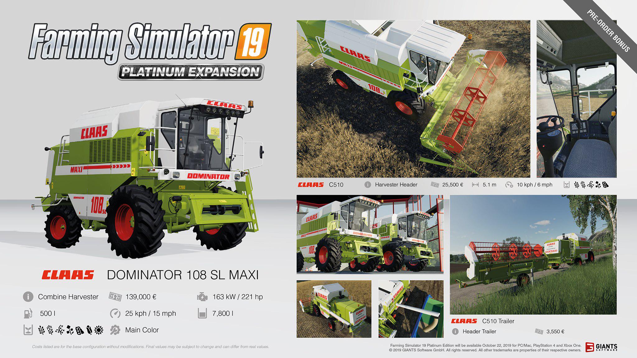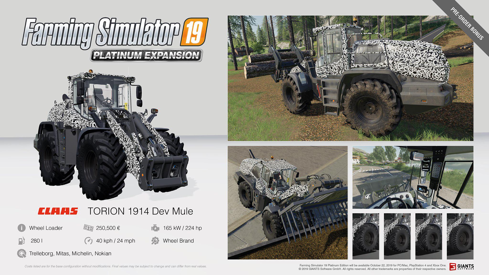 It´s time for the first Farming Simulator 19 Platinum fact sheets: the Pre-Order bonus vehicles Claas TORION 1914 DEV MULE and CLAAS DOMINATOR 108 SL MAXI.