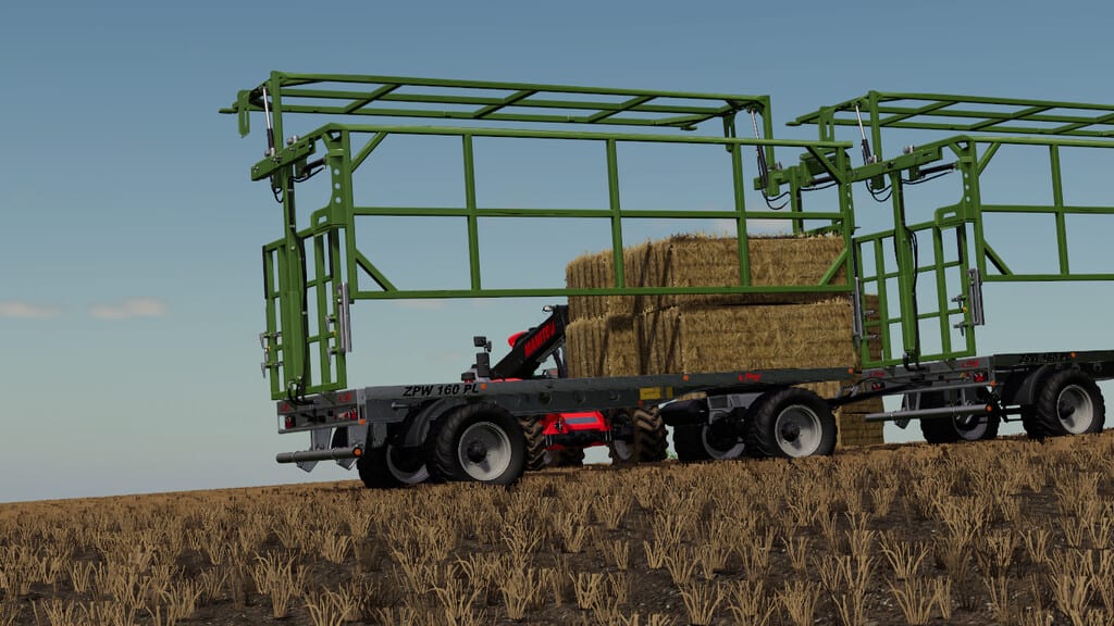 Fliegl ZPW160 PL bale wagon. This is characterized by the fact that the bales can be fixed without lashing tension belts. The Price is 20.000 €