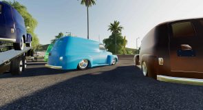 I made a new panel truck, but unlike the apache, this one you can put things in the back, although quite limited by the space availlable, it has adjustable suspension from stock height to the ground, it has a couple of wheel option, some widened fender to fit more meat under there, you can strap it but it has no strap inside it, so things move when you drive, custom color, I tried a new Udim material for more of a pearl effect, that’s it so have fun with it!