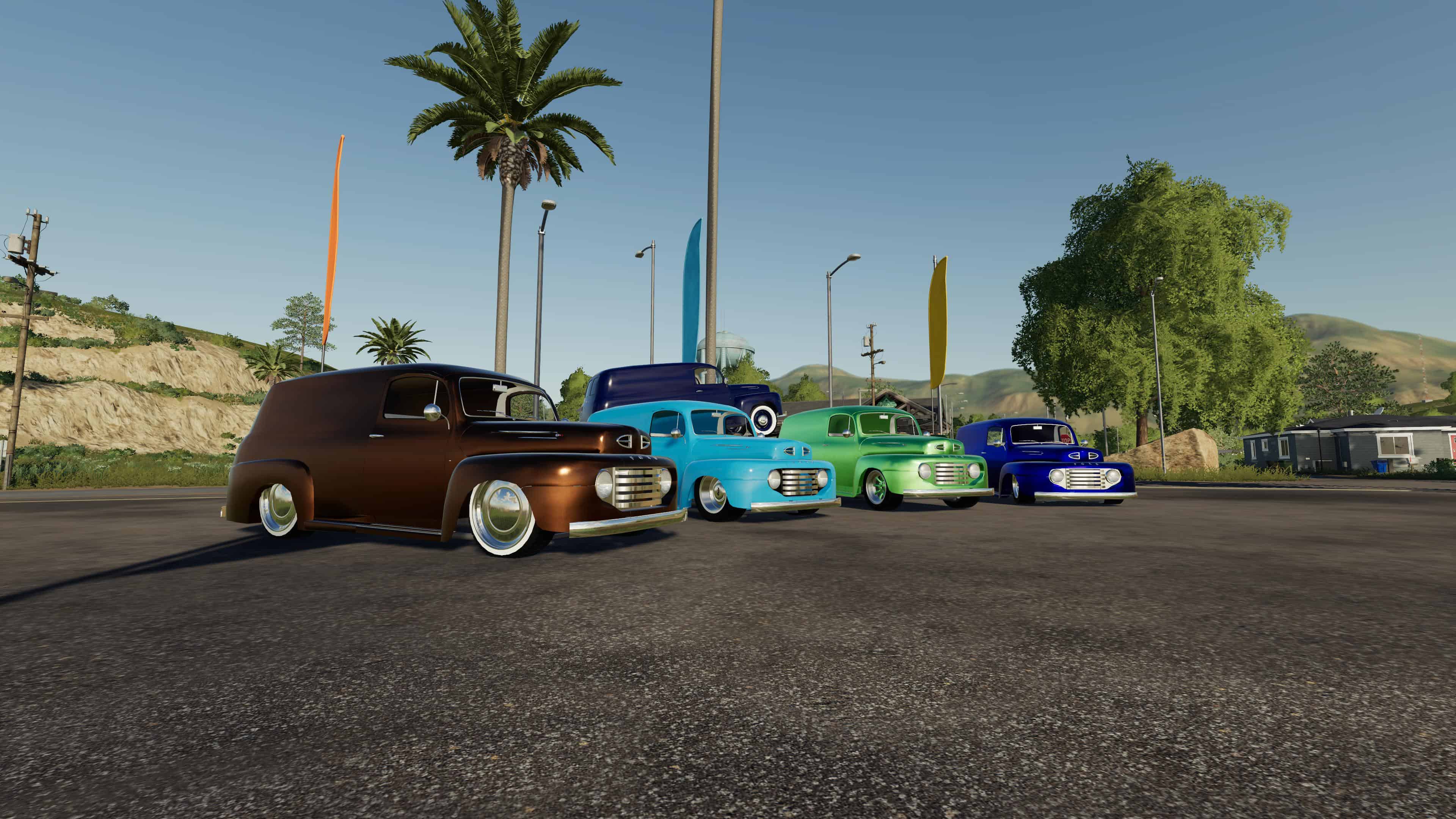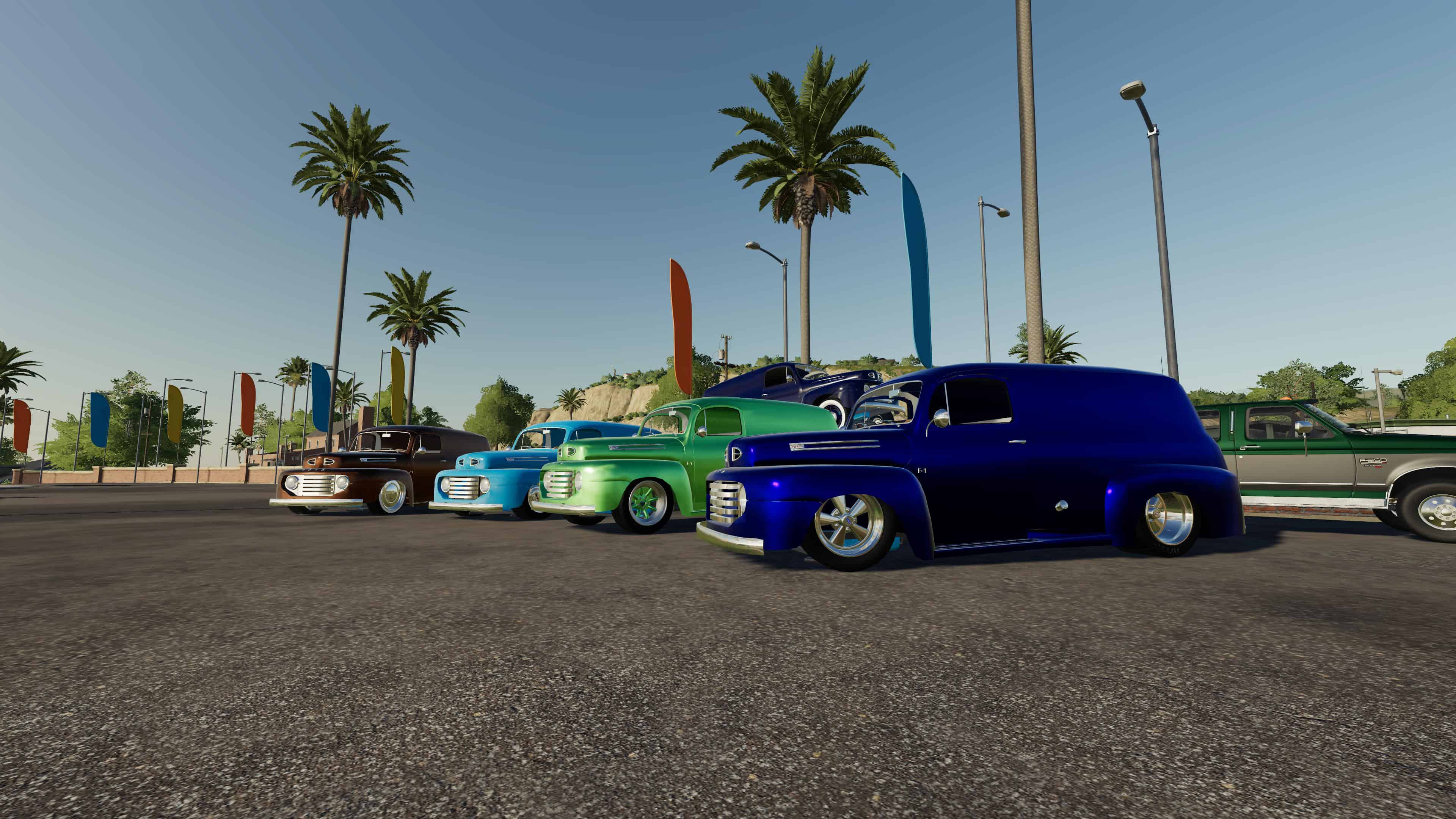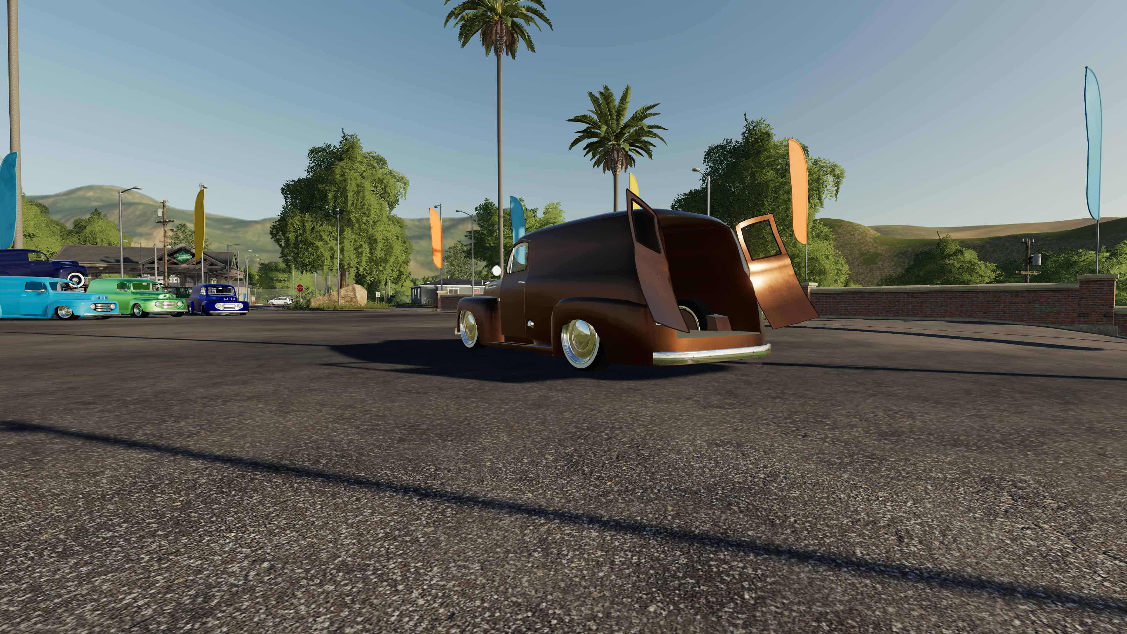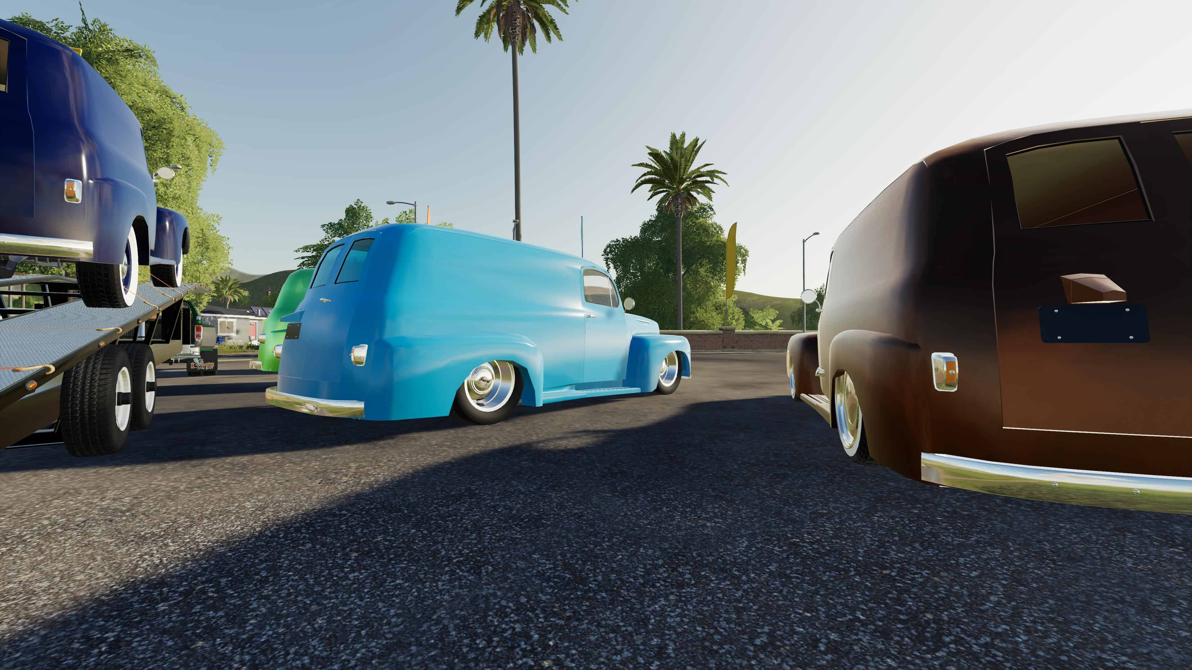 I made a new panel truck, but unlike the apache, this one you can put things in the back, although quite limited by the space availlable, it has adjustable suspension from stock height to the ground, it has a couple of wheel option, some widened fender to fit more meat under there, you can strap it but it has no strap inside it, so things move when you drive, custom color, I tried a new Udim material for more of a pearl effect, that’s it so have fun with it!