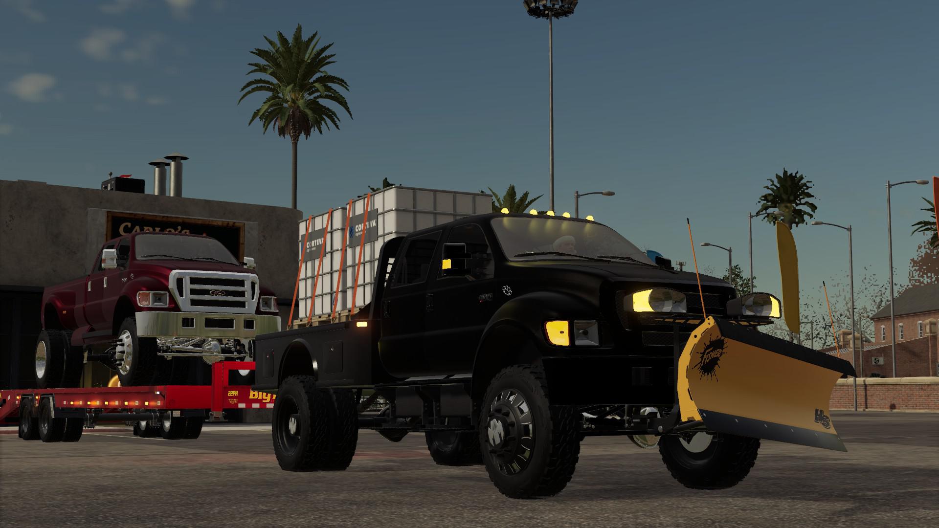 F650 has stock and flatbed options as well as a plow mount and strobe light option. Semi hitch might be useless because of the lift but it pulls from the bumper just fine.