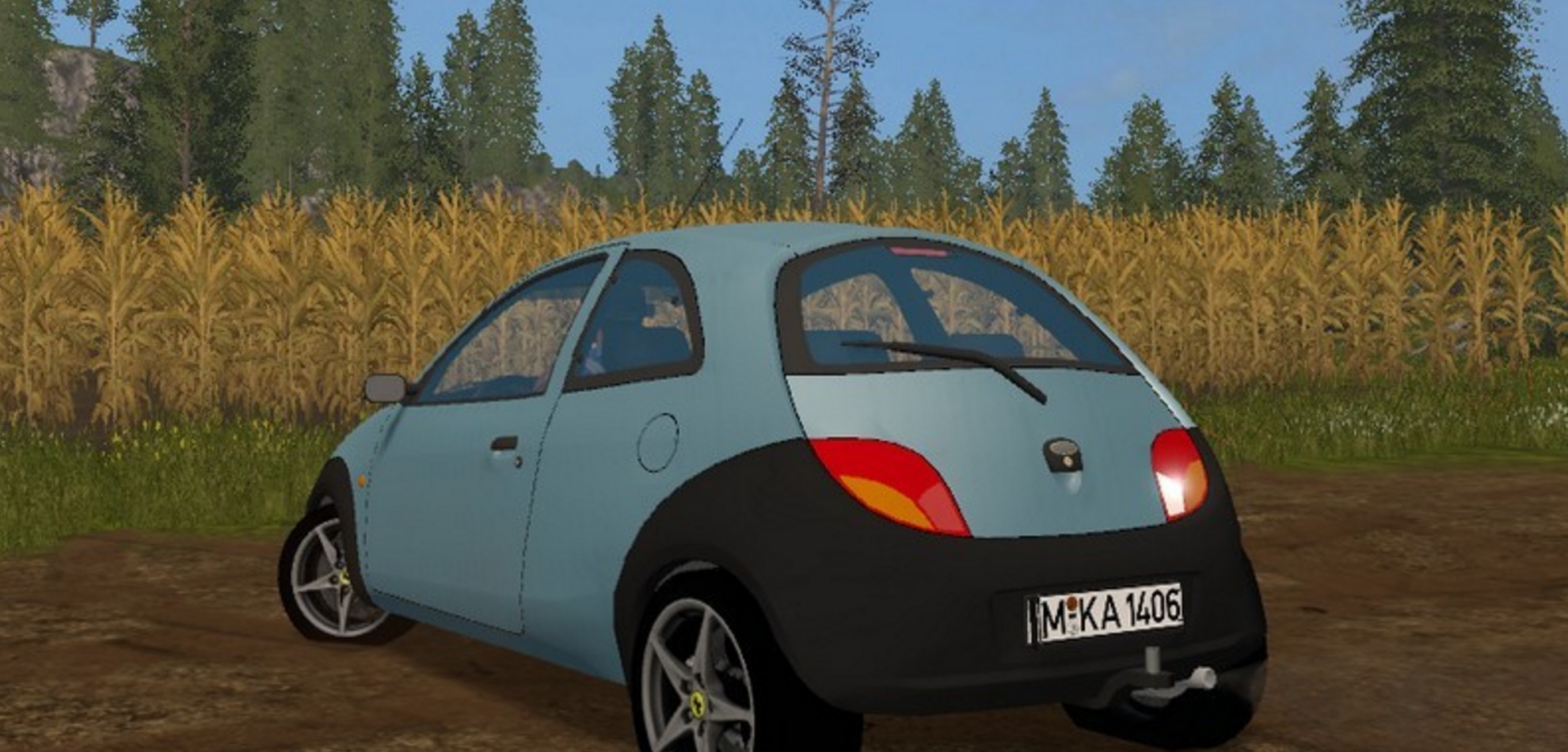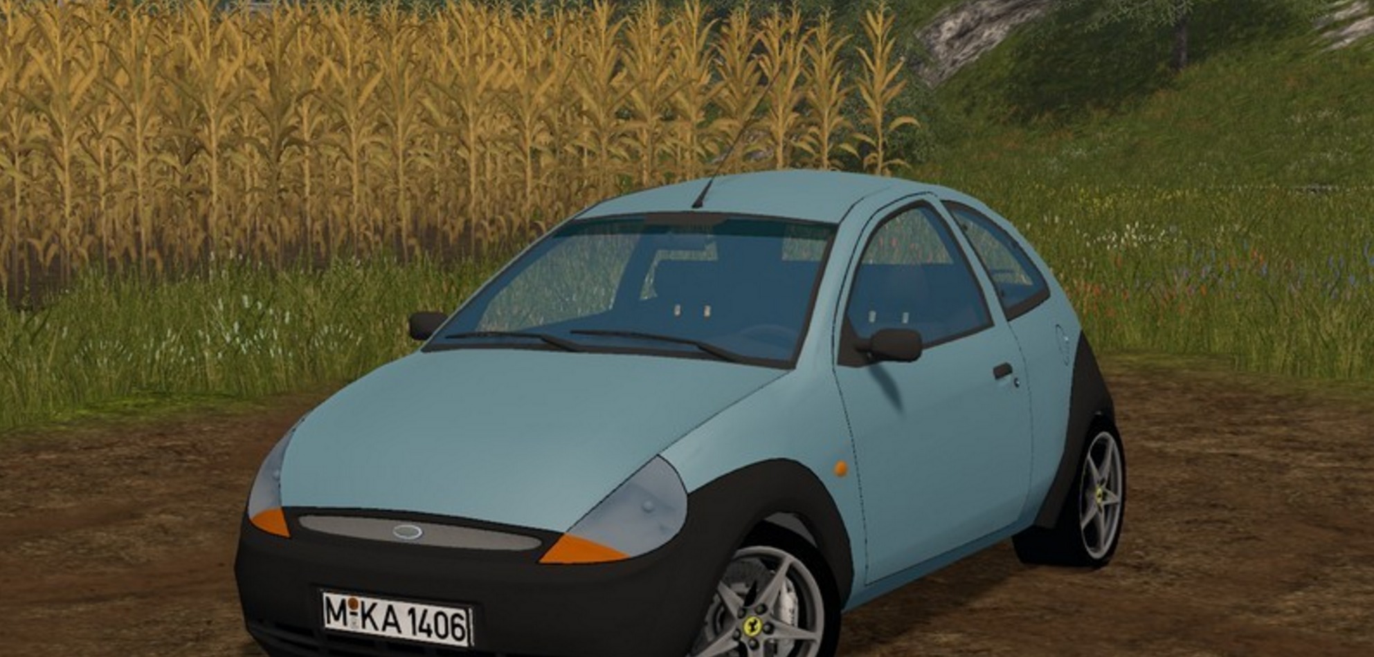 Stylish baby Ford KA V just handsome in the FS 17 is a steel blue.