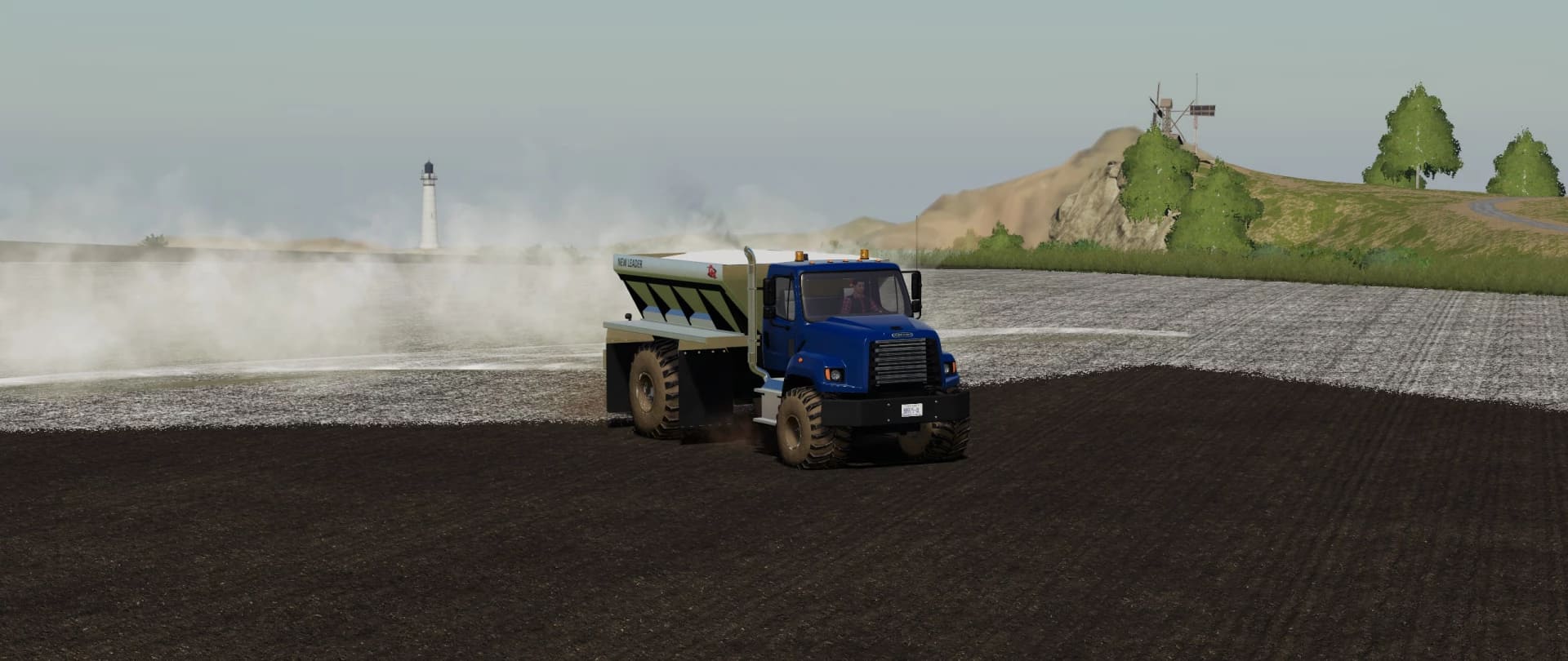 Freightliner 108SD with New Leader L4330G4 Lime / Fertilizer Spreader v1.0 FS2019