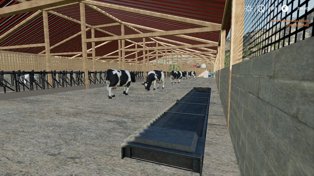 Bonjour je vous donne cette stabulation placable 3d réalisé pare Zurtez moi j’ai fais la misse en jeux et quelle que reprise en cas de bug ou de soucis contacter moi dans cette stabulation on peux mettre 45 vache et il a aussi un grand espace de stockage pour mettre des botte ou du matérielle bon jeux.