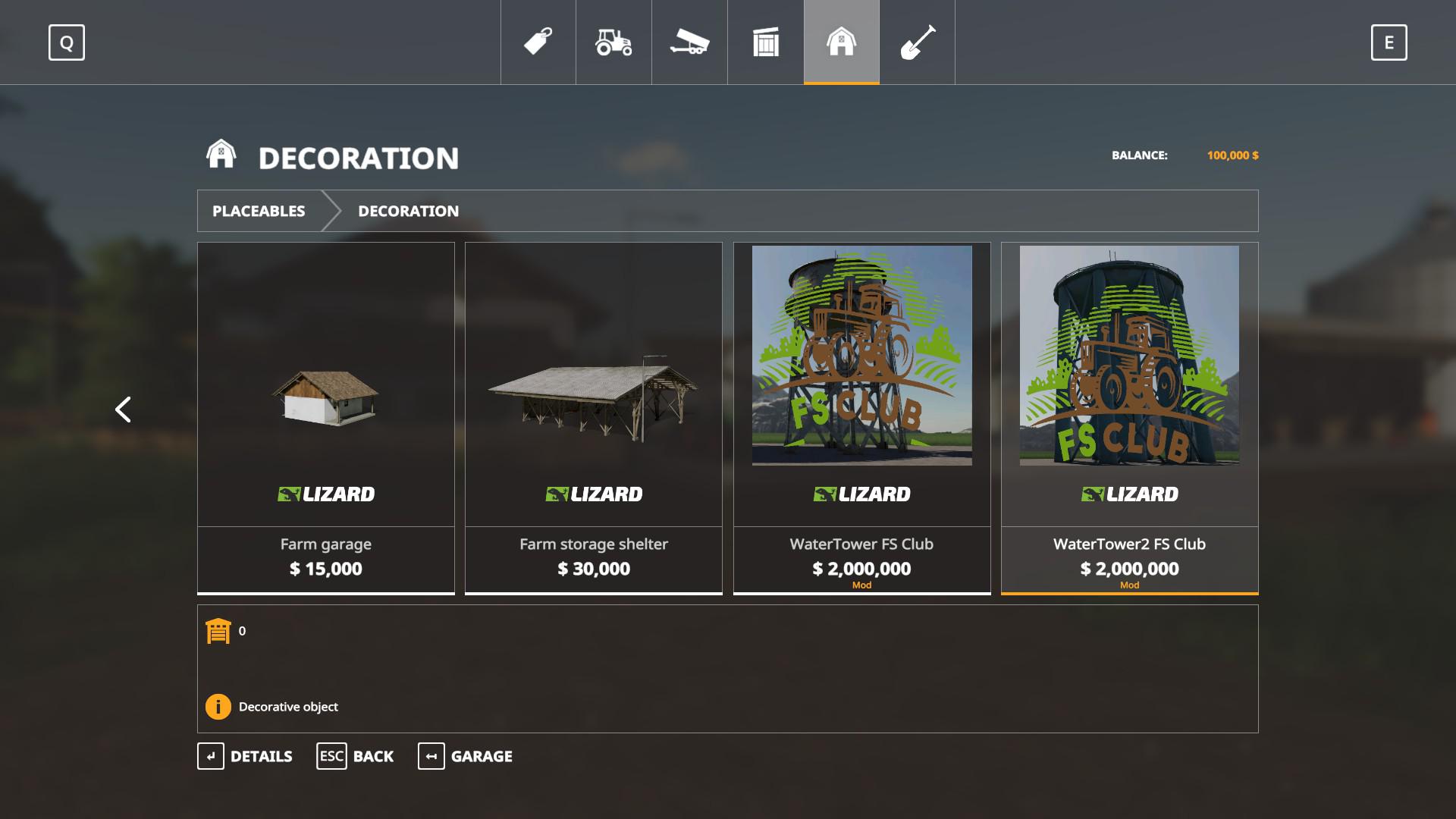 Fs Club Water Tower and salepoint trigger placeable.