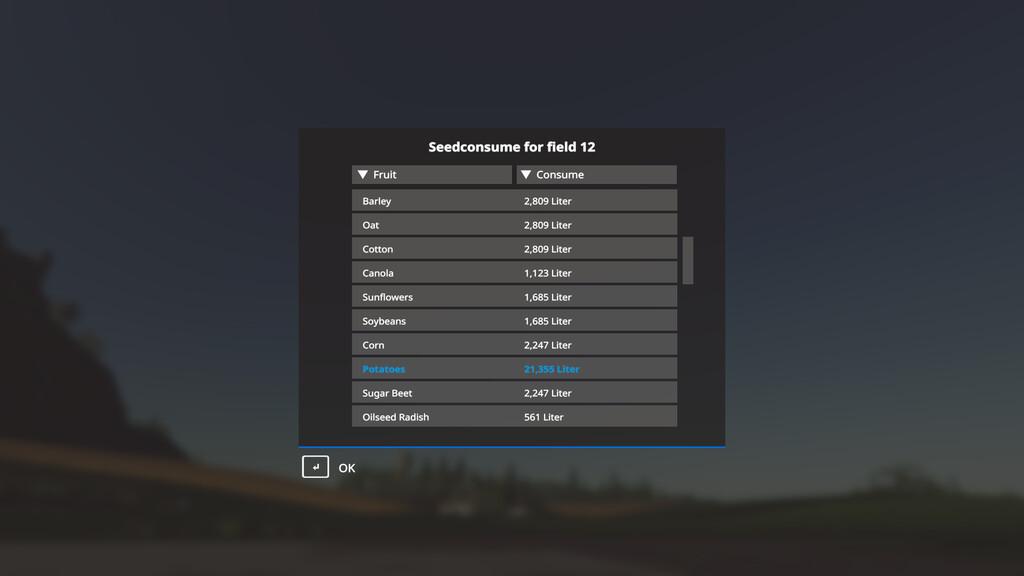 You can find the overview in the GlobalCompany menu. To see the seed consumption, click on the corresponding line. Then you can open another window.