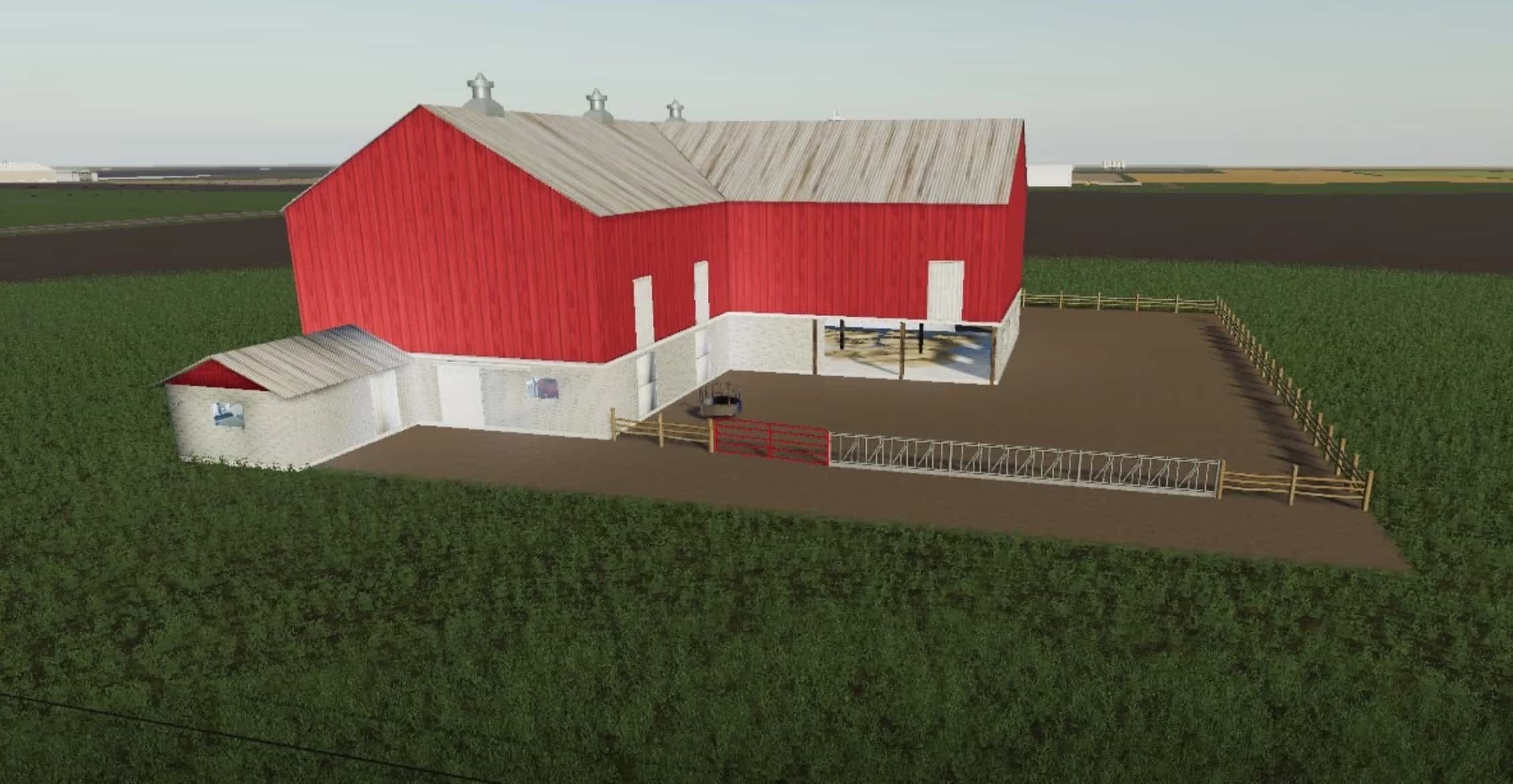 The dairy barn is something that Brian Greenawalt provided to me in an edit of Autumn Oaks that will be released eventually, but one of the things I wanted to do was to get a couple of these barns put together as placeables. This one has a TON of detail, which you can thank Brian for. The feed triggers are in front of the cows, and outside at the feed bunk, and the bale ring accepts bales. straw trigger is in the center alley of the barn. Theres a feed room off the back corner of the barn, which is ready for you to place the silo of your choice to feed from the comfort of your barn. The manure cleaner ISN’T functional as a placeable, but thats where the manure drops, and its built low, so your best bet is to contour a little pit right there with the sculpting tools.