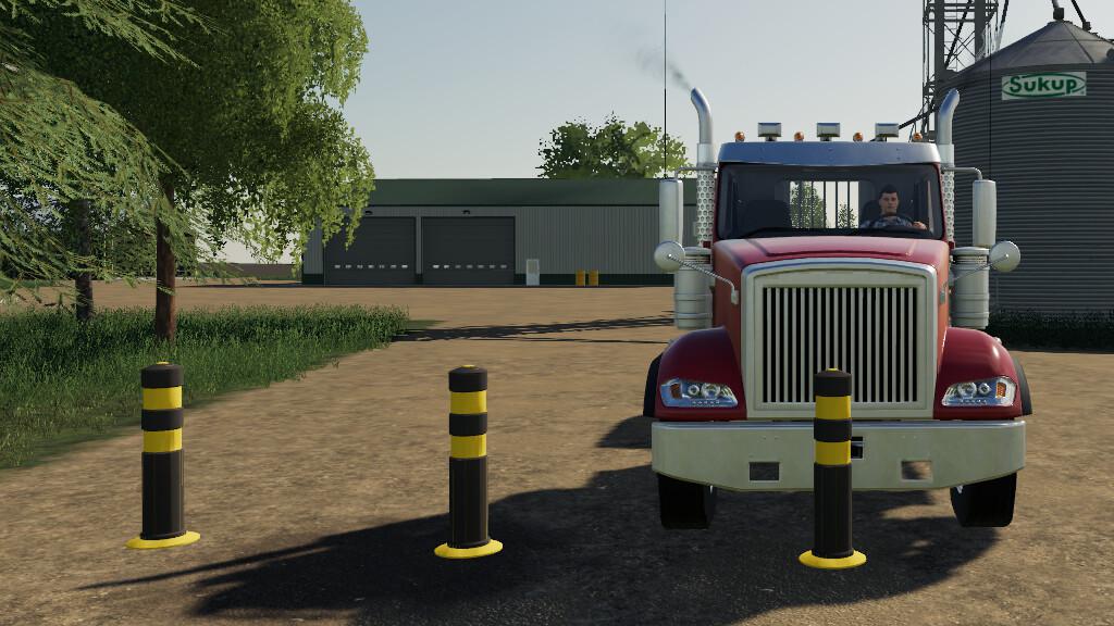This is an animated hydraulic bollard to protect a road or a farm entrance on your map. The package includes a single, double and triple set of bollard posts. Price: 150€ Maintenance: 1€ / day.