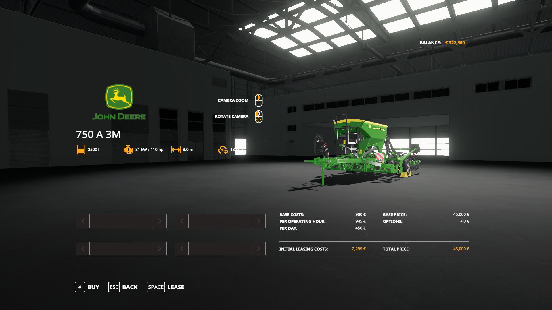 John Deere 750A Simple reskin du semoir de base for Farming simulator 19