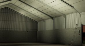 A hall for your crops or machinery. With lights.