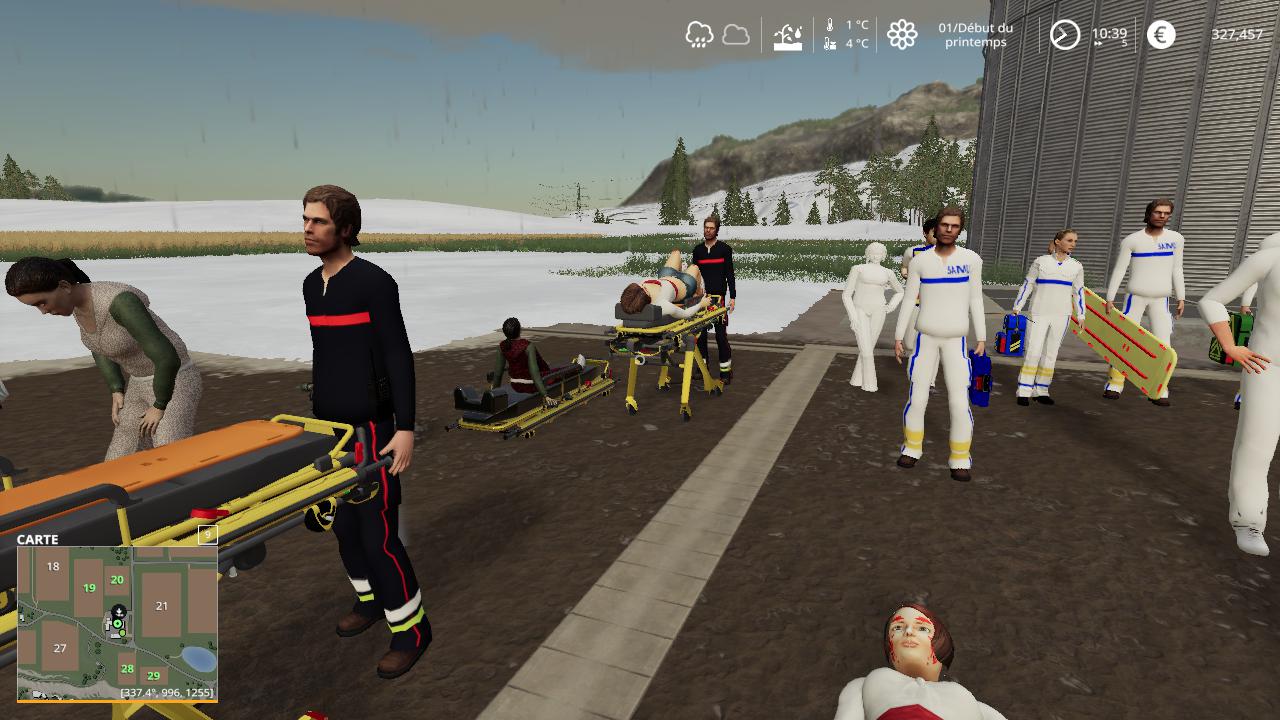Bonjour a tous voici les personnages de secours francais placable pour fs19 il ya dans ce mega pack les personnage pompiers , policier , gendarmerie , samu ,et les secouristes avec les differentes victimes.