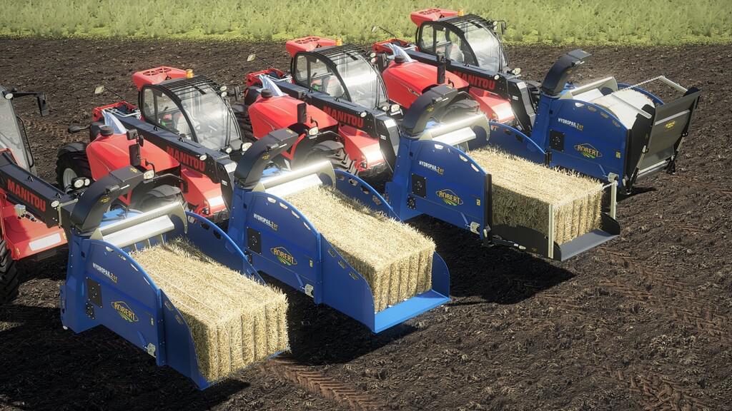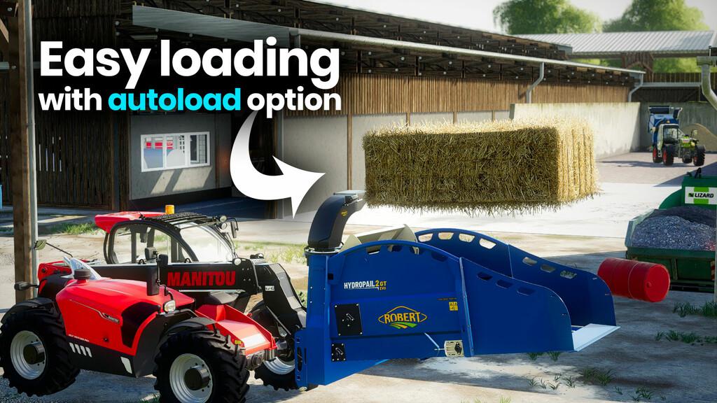 Frontal straw blower for telescopic, the Hydropail can accommodate round or square bales thanks to its door. Mulching can be done right, left, or even forward.