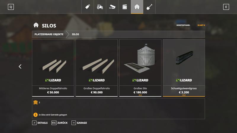 A bulk material wall zb. to store grain or shredded material between, can be arbitrarily set.