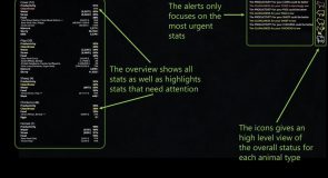 Stockman HUD gives you an overview of your animal husbandry with alerts and summaries for the most important stats. The basic idea is to focus only on the information you need at the moment and highlight important stats so you can be effective when caring for your livestock.