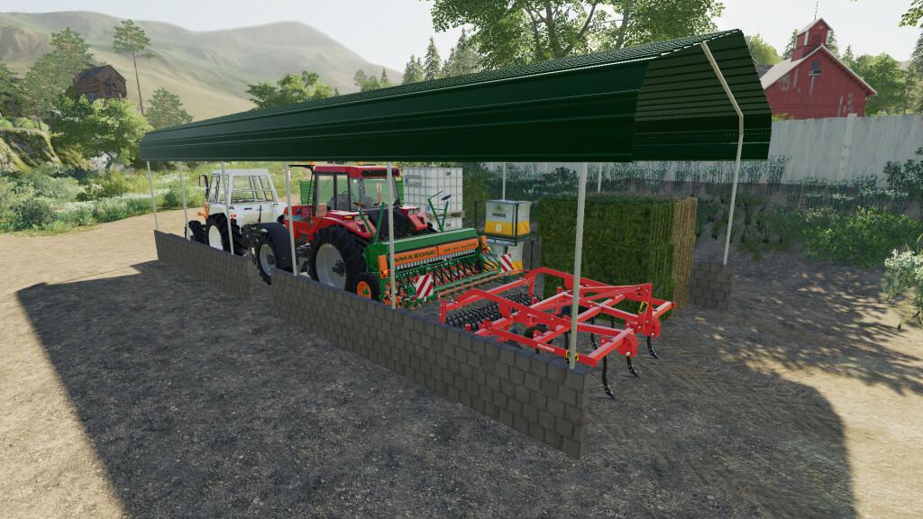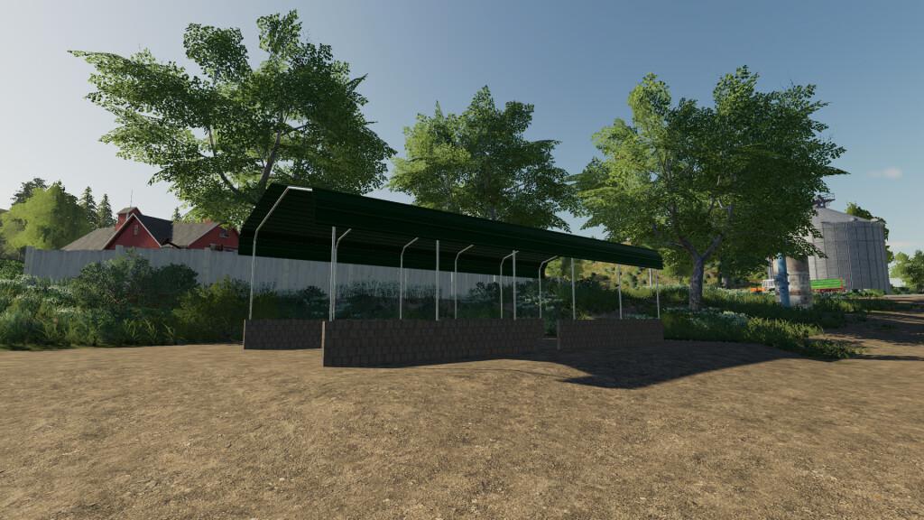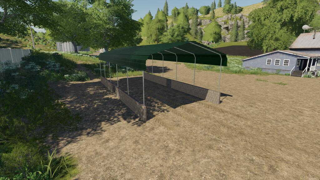 Simple 5 x 15 M open shed for storing vehicles, equipment, bales and pallets.