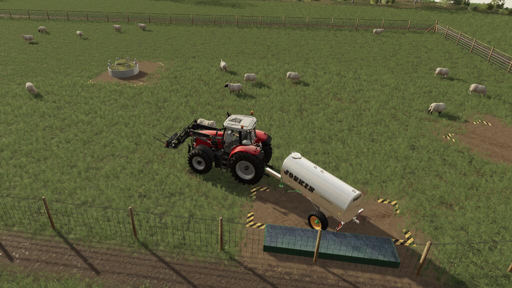 For feeding the sheep can take advantage of the grass in the pen, additionaly you can give them hay, fresh grass, or hay pellets that you will put in the feeding trough in the centre of the pen. A drinking trough is also available.