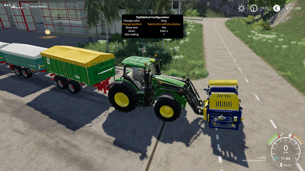 1.0.0.1: Fixed – If the main vehicle (e.g. a truck) as well as it’s trailer had a tipping functionality, the TipSideHud wasn’t shown for the trailer, just for the truck