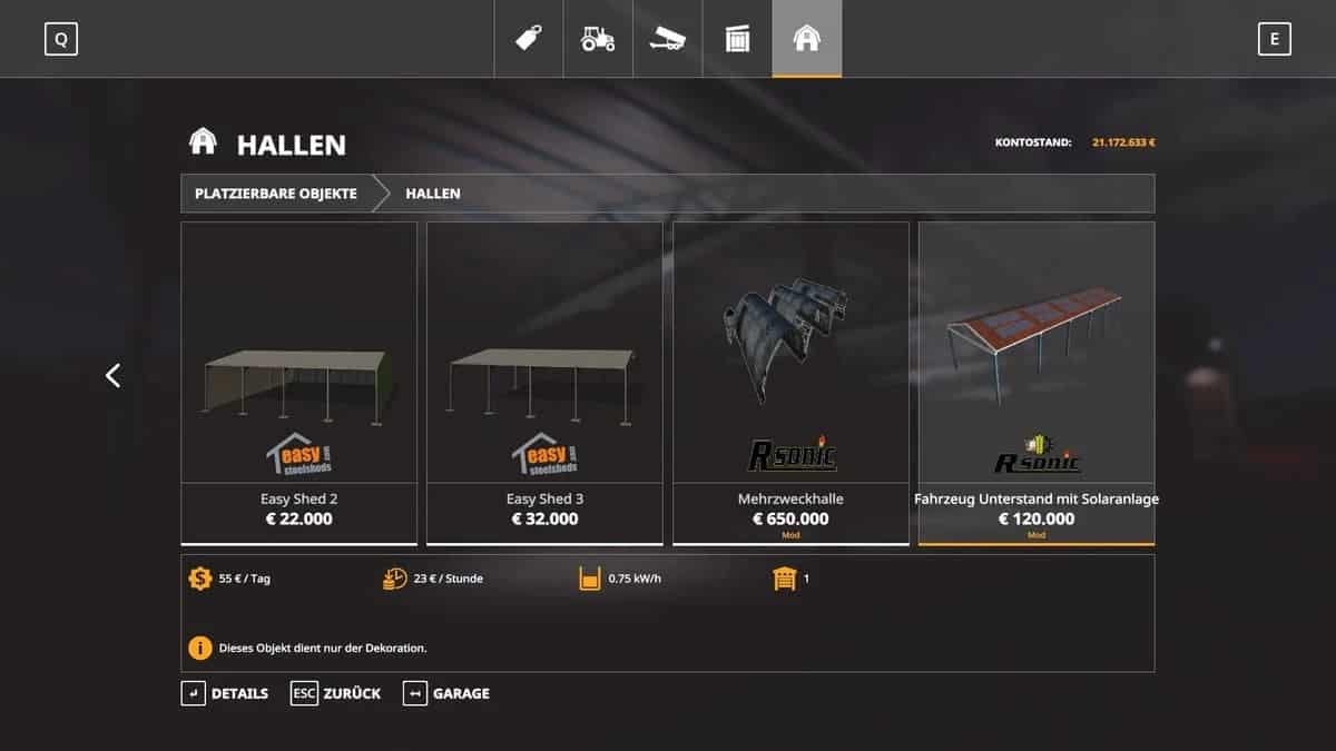 FS19 Vehicle shelter with solar system v1.0
