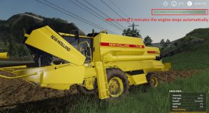 By default the implement is stopped after 2 minutes (except for sprayer that is stopped directly as usual). The engine is stopped after 3 minutes.