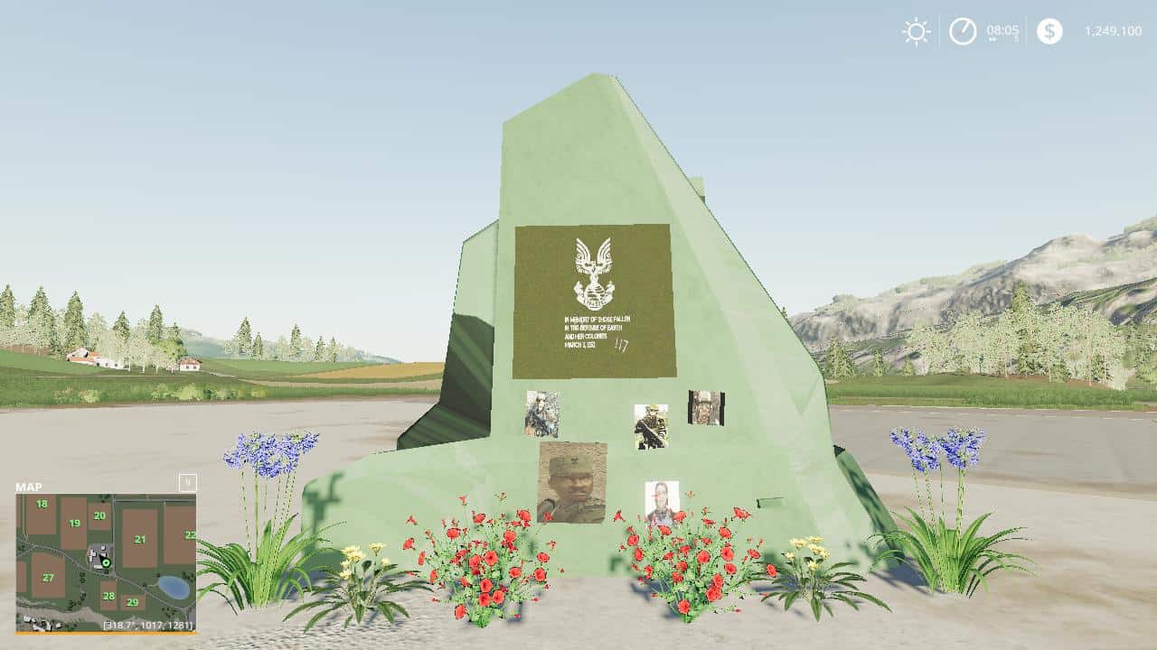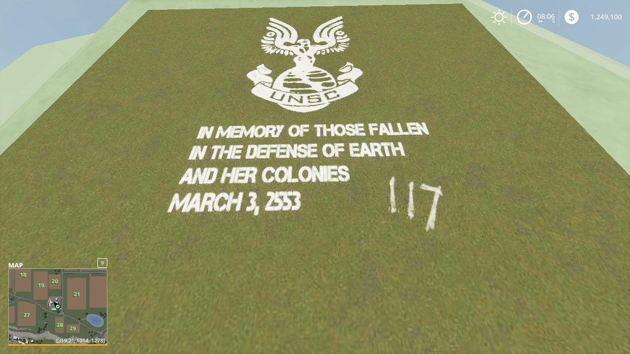 This is the monument at the end of haIo 3, remeber? with 117 carved into it, i’m pretty sure it was a pelican wing with some pictures of the people whom died in the human covenant war. Well i made it for fs19, if you downloaded the future tractor it would be kinda funny.
