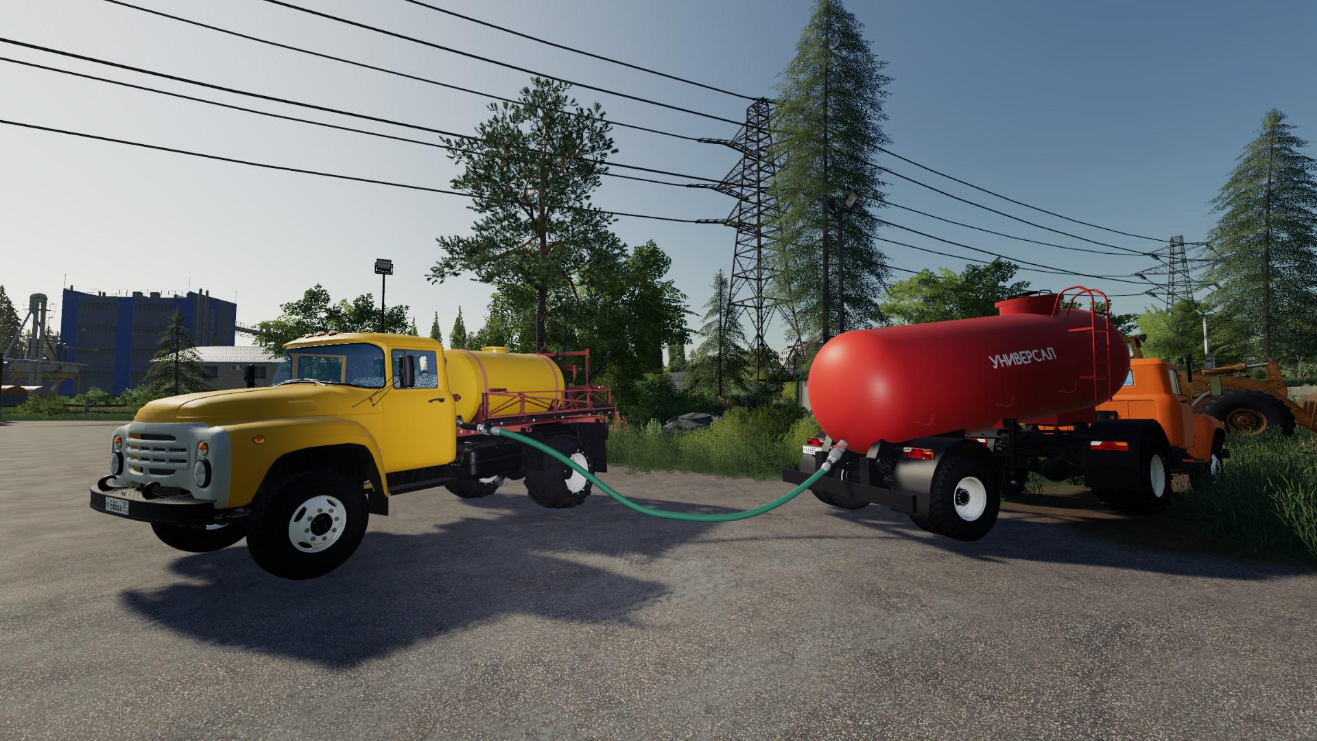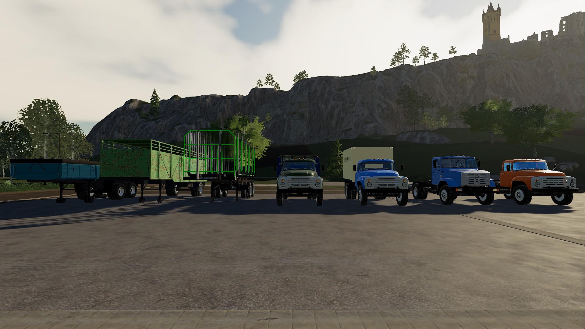 The pack includes: Trucks: – ZIL – 442160; – ZIL – 4415A; – ZIL – MMZ-554 modular; – ZiL – MMZ 554. Trailers and tanks: – State Clinical Hospital – 819; – ODAZ – 885; – ARUP – 8; – ARUP – 8P; – ARUP – 8 universal; – Module – fuel barrel; – timber truck; – cattle truck; – Barrel for milk; – Module – grocery van; – The module – a sprayer; – Module – fertilizer distributor MVU; – KAZ-717. – Changes 4.9 added manure hoses.