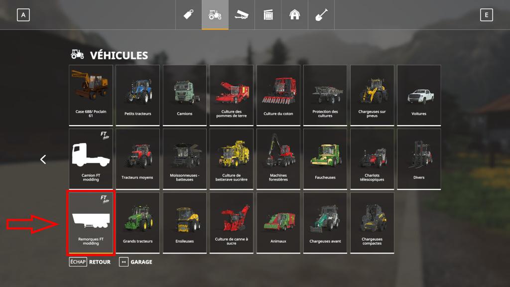 Le plateau se trouve dans une catégorie (Remorques FT modding).