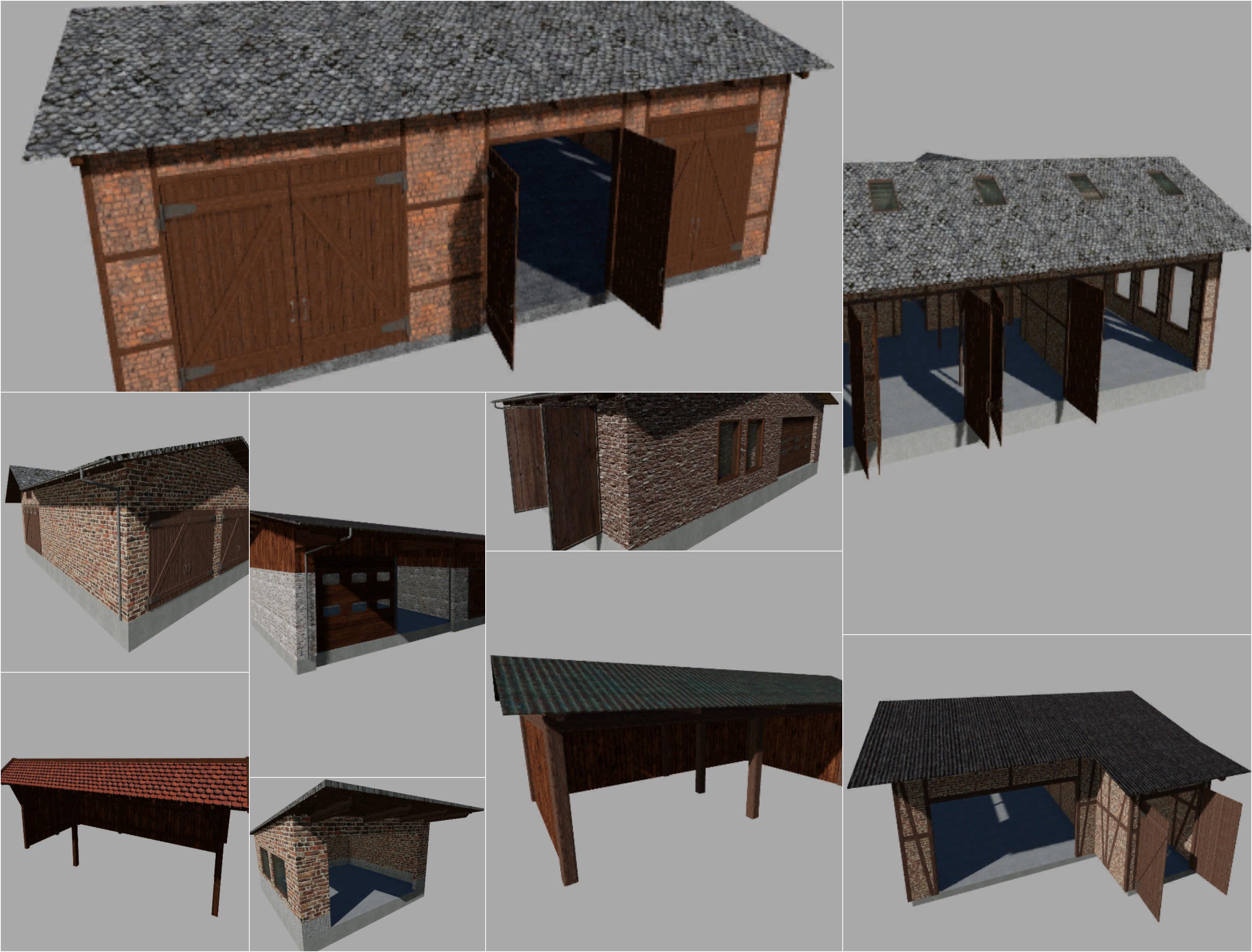 EN: 17 different buildings, halls, shelters and workshops. DE (Original): 17 unterschiedliche Gebäude, Hallen, Unterstände und Werkstätten. FR: 17 bâtiments, halls, abris et ateliers différents. PL: 17 różnych budynków, hal, schronisk i warsztatów.