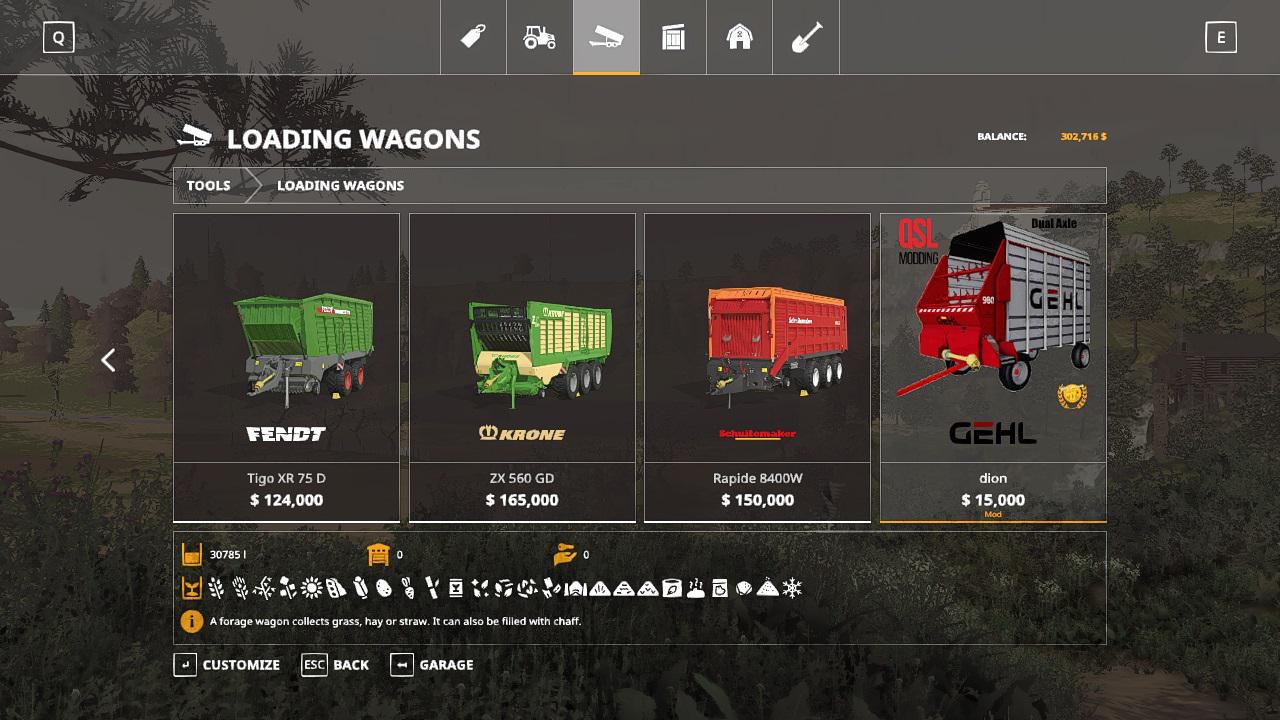 This forage wagon holds 30000 liters and works great. Cost instore 15000.