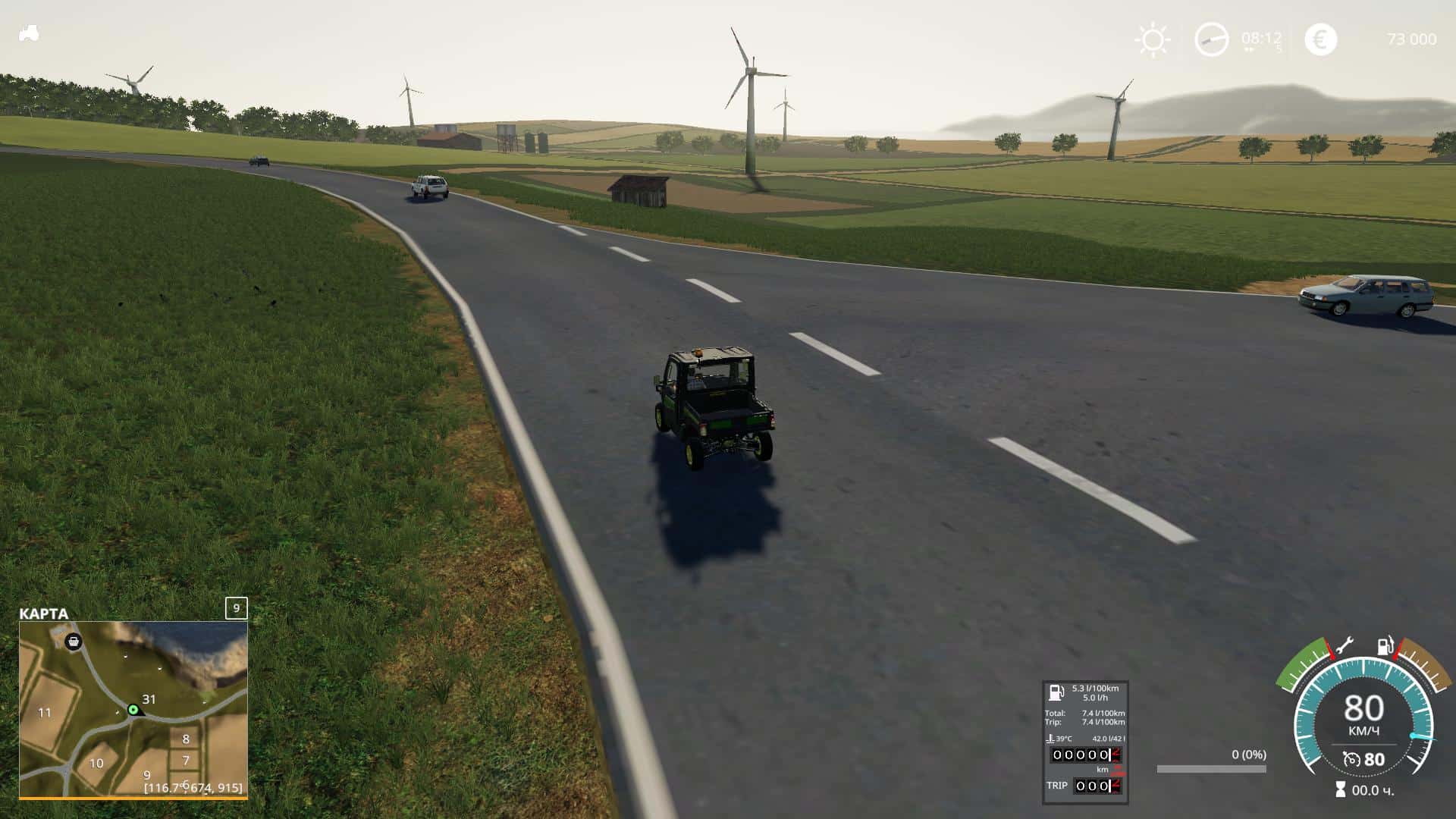 Added all FENDT equipment which is sewn to the root of the card. The tractors have a normal camera distance. Now it is not as close as in the standard. There is also a grass trailer and a combine