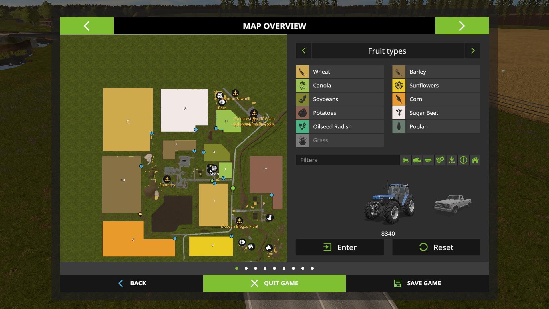 Russian map on its territory corrected the error, and modified in some places. Now grown on standard culture fields 15 fs, as well as sunflower. Move the starting point of the purchase appliances, because the small area of the garage. Homepage tractors and machines present.
