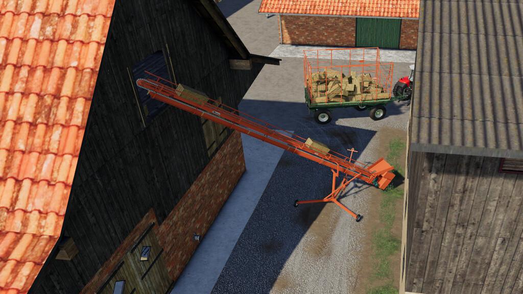 With this conveyor belt, small HD bales and objects of the same size can be transported. It is mainly used to fill the hayloft with bales.