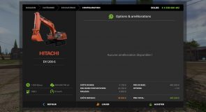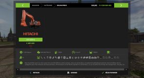 FR: Apres toutes attente, c’est avec grand plaisir que je vous devoile et partage cet Hitachi EX1200-6 tiré de Rigs of Rods model bien connu de cet simulation et que je vous presente pour Farming Simulator 2017, Bien que FS a bien evolué au fur et a mesur des Opus, les machines sont la pour ameliorer le travail, avec cet excavatrice vous pourrez non seulement ameliorer vos cote de chargement mais aussi mettre un peu de simulation TP dans cet environement Agricoles, le but d’avoir de tel engins est pour ameliorer le rendu de vos entreprise ou ferme, avec cet excavatrice vous aurrez l’avantage de ne plus avoir a se soucier de vos chargement, avec sa capactié godet de 19000 L, nul besoins de s’en soucier. Entrer du Vehicule soit par TAB, ou la monter habituel ou bien par l’enteranimation, Machine pliable pour sa fonction transport ou depliable pour sa fonction de travail, Regime moteur inclus pour un meilleur maniment de la pelle, IC fonctionnel de l’exterieur pour ajouter: Planche de bois, gyrophare de transport, Cage de Protection, et enfin ouverture des Portes cabine et de maintenance. Pour l’interieur, bon nombre d’animation sont aussi presente: Essuie Glace, Par Soleil, Porte, Accoudoir, Colision Godet Desactivable, Radio, et Feux de Cabine, Levier et pedale fonctionnel pour clavier, et Joystick de commande relié sur la commande du bras, Marchant comme le jenz broyeur, vous pouvez changer la selection de la souris par l’intermediaire de ctrl w pour avoir a la fois la commande du bras mais aussi le reglage de vos Feux et de vos Retroviseur. Cab suspension present sur le siege Conducteur, Colision Apparante sur toutes l’excavatrice, Colision balancier, godet, garde-corps se desactive quand elle se plie et se réactive quand vous le deplier, Petit clin d’oeil, le Drapeau present sur le cache moteur bouge en fonction de la position de la tourelle, Sa vitesse max est de 8 Km/h et son regime max est de 2200 rpm, 1300 L de capactié reservoir, 1200 Euro d’entretion, 485 000 Prix d’achat et 36 880 de Location, Feux par 3 position, 5 Camera Fonctionnel sur la machine, Passenger par l’entrer du garde-corps droit, Indication digital et par aiguille pour l’indication vitesse, regime, fioul, heures, et heure de l’engins sur le cadrant present dans la cabine, et enfin echapement origninal et fumer presente sur le demarage et sur le regime de l’excavatrice, A present a vous de decouvrir cet Machine pour votre plus grande passion la Simulation !