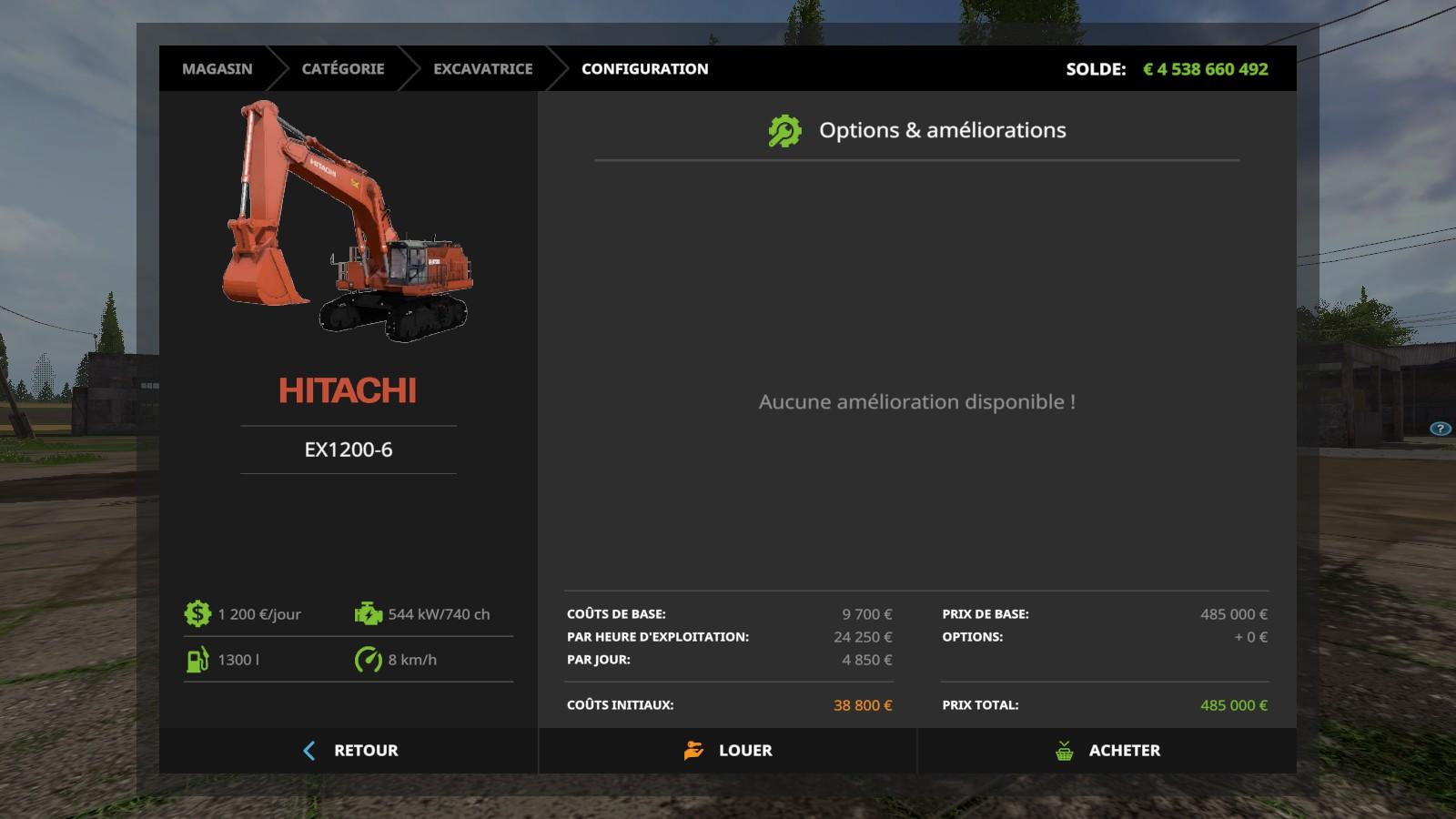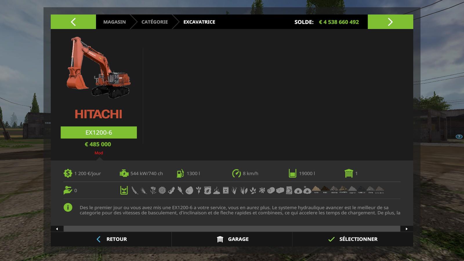 FR: Apres toutes attente, c’est avec grand plaisir que je vous devoile et partage cet Hitachi EX1200-6 tiré de Rigs of Rods model bien connu de cet simulation et que je vous presente pour Farming Simulator 2017, Bien que FS a bien evolué au fur et a mesur des Opus, les machines sont la pour ameliorer le travail, avec cet excavatrice vous pourrez non seulement ameliorer vos cote de chargement mais aussi mettre un peu de simulation TP dans cet environement Agricoles, le but d’avoir de tel engins est pour ameliorer le rendu de vos entreprise ou ferme, avec cet excavatrice vous aurrez l’avantage de ne plus avoir a se soucier de vos chargement, avec sa capactié godet de 19000 L, nul besoins de s’en soucier. Entrer du Vehicule soit par TAB, ou la monter habituel ou bien par l’enteranimation, Machine pliable pour sa fonction transport ou depliable pour sa fonction de travail, Regime moteur inclus pour un meilleur maniment de la pelle, IC fonctionnel de l’exterieur pour ajouter: Planche de bois, gyrophare de transport, Cage de Protection, et enfin ouverture des Portes cabine et de maintenance. Pour l’interieur, bon nombre d’animation sont aussi presente: Essuie Glace, Par Soleil, Porte, Accoudoir, Colision Godet Desactivable, Radio, et Feux de Cabine, Levier et pedale fonctionnel pour clavier, et Joystick de commande relié sur la commande du bras, Marchant comme le jenz broyeur, vous pouvez changer la selection de la souris par l’intermediaire de ctrl w pour avoir a la fois la commande du bras mais aussi le reglage de vos Feux et de vos Retroviseur. Cab suspension present sur le siege Conducteur, Colision Apparante sur toutes l’excavatrice, Colision balancier, godet, garde-corps se desactive quand elle se plie et se réactive quand vous le deplier, Petit clin d’oeil, le Drapeau present sur le cache moteur bouge en fonction de la position de la tourelle, Sa vitesse max est de 8 Km/h et son regime max est de 2200 rpm, 1300 L de capactié reservoir, 1200 Euro d’entretion, 485 000 Prix d’achat et 36 880 de Location, Feux par 3 position, 5 Camera Fonctionnel sur la machine, Passenger par l’entrer du garde-corps droit, Indication digital et par aiguille pour l’indication vitesse, regime, fioul, heures, et heure de l’engins sur le cadrant present dans la cabine, et enfin echapement origninal et fumer presente sur le demarage et sur le regime de l’excavatrice, A present a vous de decouvrir cet Machine pour votre plus grande passion la Simulation !