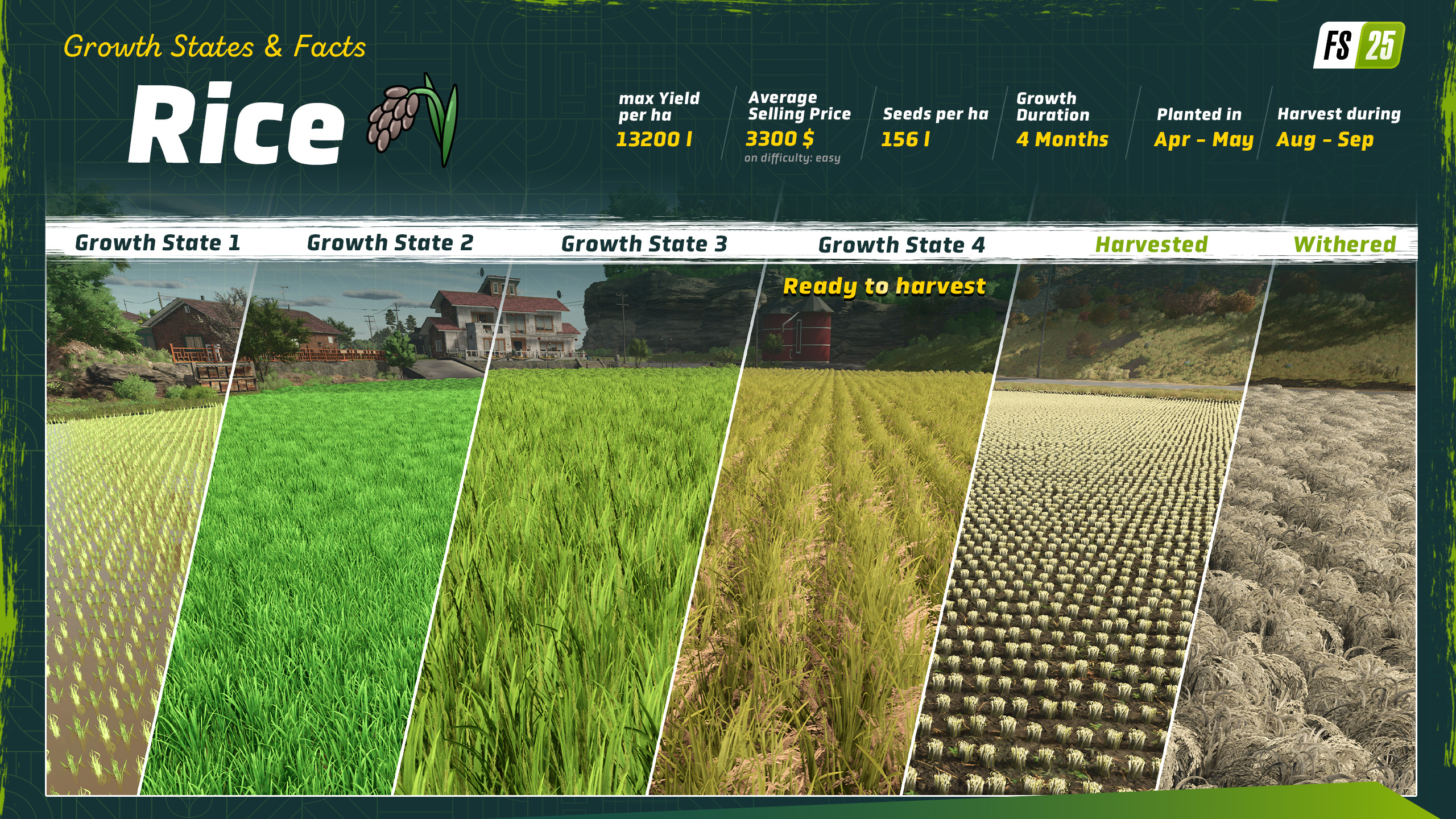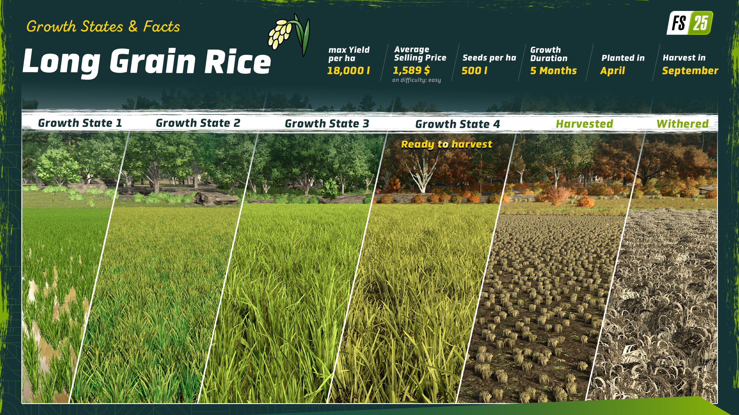 Here’s the thing about rice in Farming Simulator 25: Not all rice is the same. There are two different types – long grain rice and what we just call “rice”. How about we take a closer look at the differences between them?
