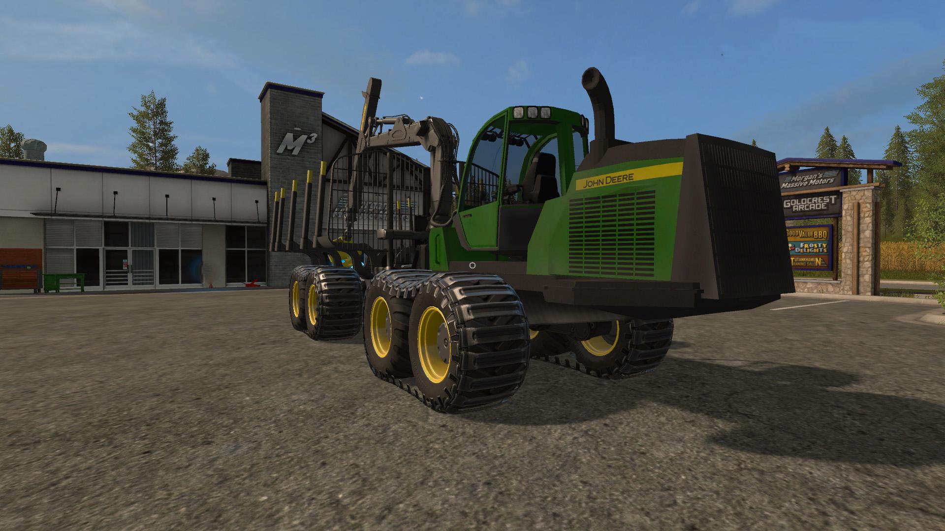 Forwarder John Deere 1910E for Farming Simulator 17. The cost of the harvester in the game, €: 353000 Service harvester €/day: 85 Engine power, HP: 564 Fuel tank capacity, l: 250.