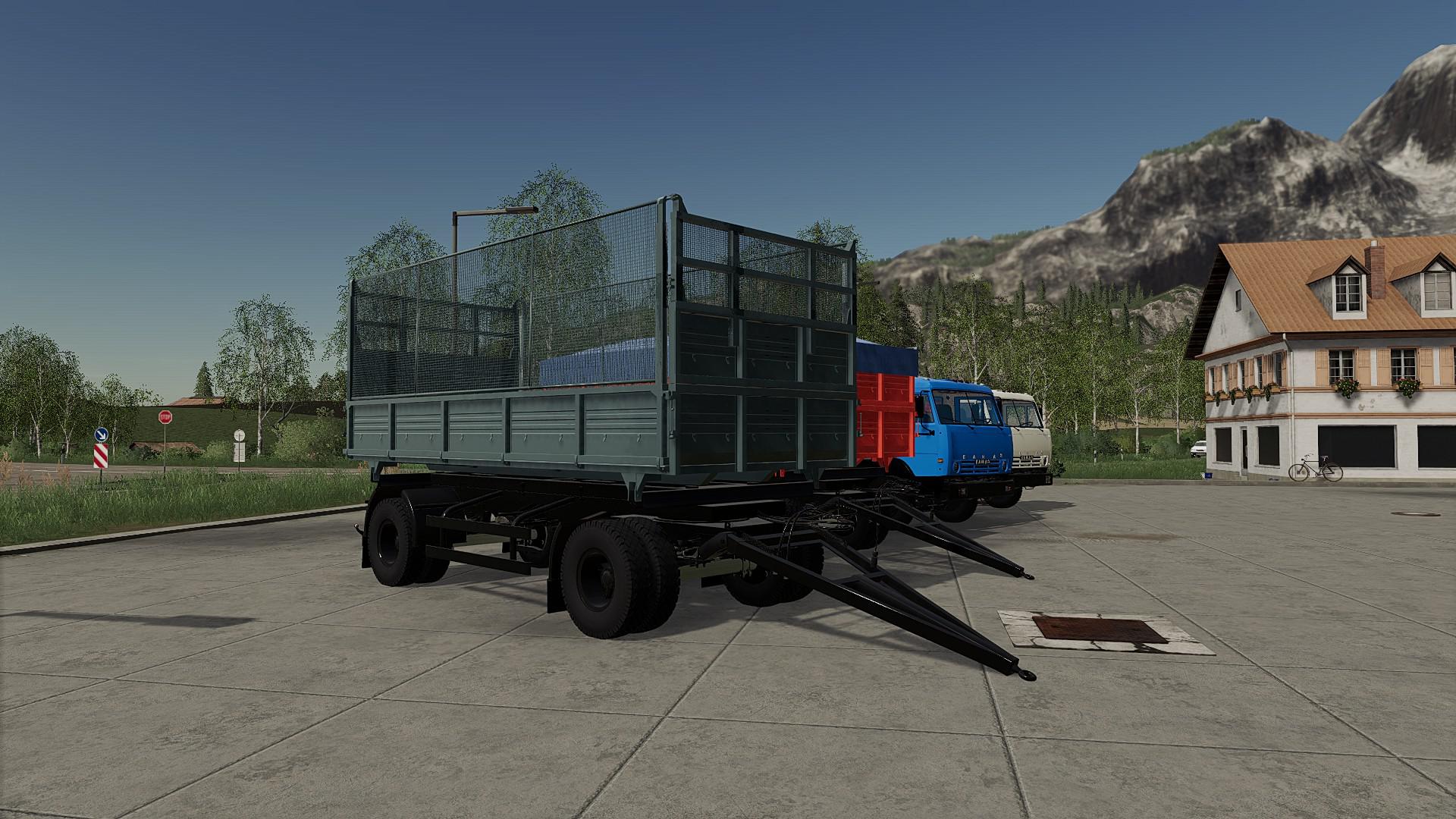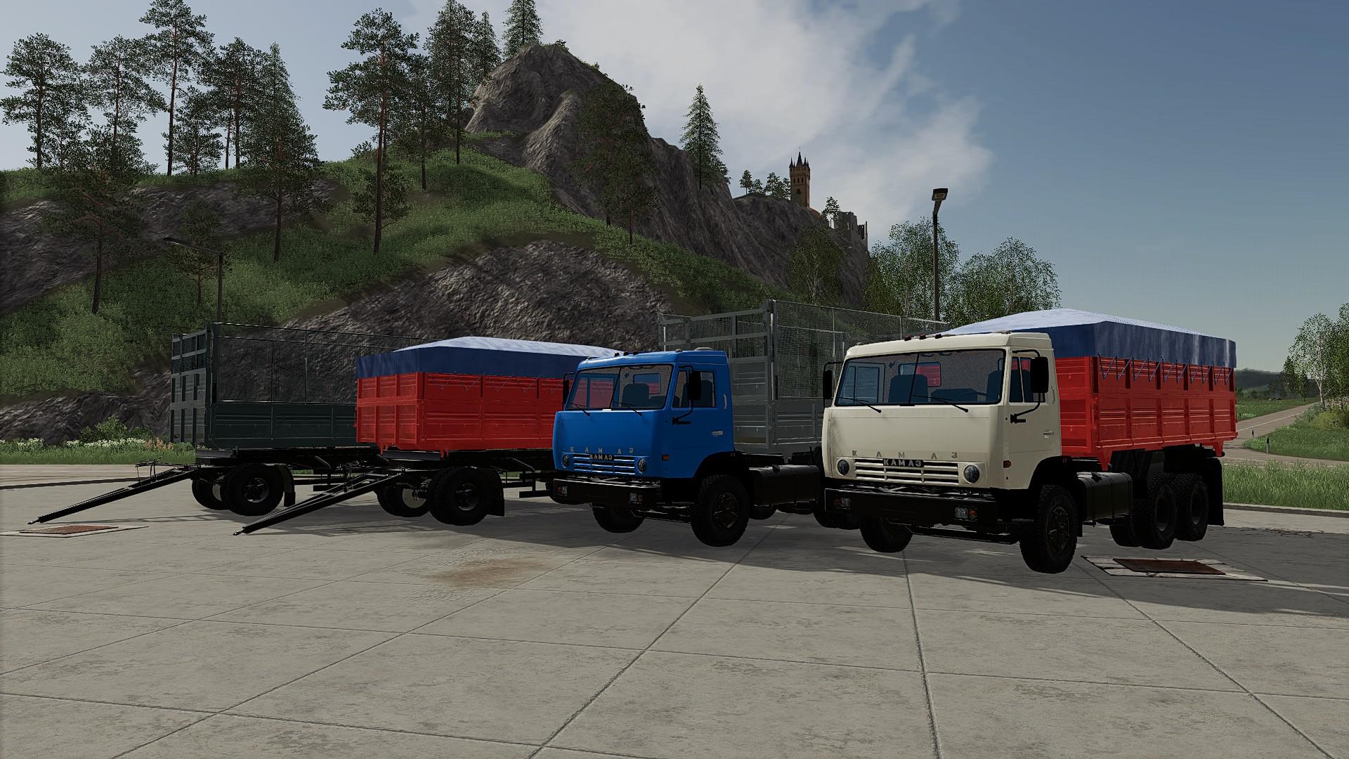 – Power: 129 kW / 176 hp.; – Speed: 83 km / h; – The volume of the fuel tank: 440 l.; – Cost: 12 500 €; – Choice of color of a cabin; – The choice of body color; – The choice of body; – Removable awning; – Animated suspension, universal joints, mud flaps and devices; – Working mirrors; – Working lighting; – leaves traces; – gets dirty and washed; – The effect of aging; – Body volume: 15,200 / 27,000 l .; – The trailer is included, also with a swap body. Changes v1.1: – Added trailer hitch; – Fixed camera in the cabin; – Mirrors are configured; – Fixed the effect of aging on mud flaps, spare wheel and headlights; – Replaced air filter; – Minor edits.