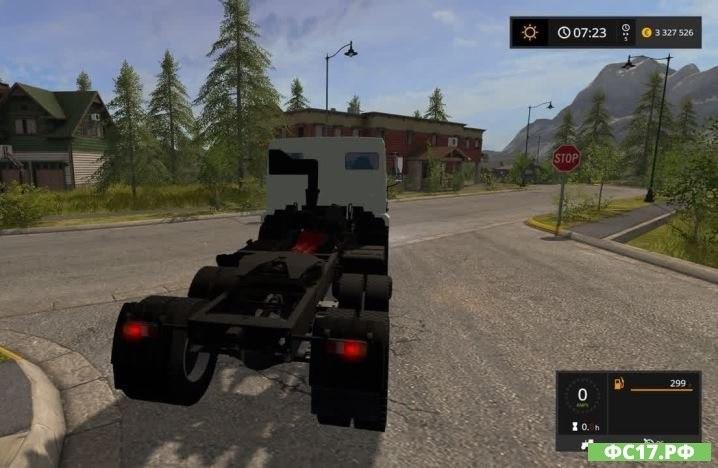 Power – 300 hp, Max. the speed is 100 km / h. There is animation suspension, turns cardan. Working lighting equipment. The instrument panel is working: a speedometer, a tachometer, and also turn signals and a main beam. Mirrors. Trailer: volume – 40 000 liters, Transport: all standard crops and loads. Unloading back.