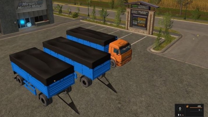 The pack consists of KamAZ and two grain trailers (3x and 2x axles). The volume of KAMAZ is 30,000 liters, and of trailers: 25,000 and 30,000 liters. Working lighting equipment. Washes. Choice of color at the cockpit.