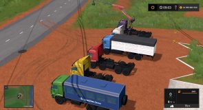 The pack includes 3 trucks, grain carrier, watch and tractor with a manipulator.