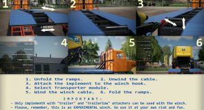 Transport module for transportation of small cars, tractors, agricultural equipment. The module is equipped with an experimental winch (option) for lifting small-sized seeders, cultivators and other agricultural machinery onto the platform (Category: Misc).